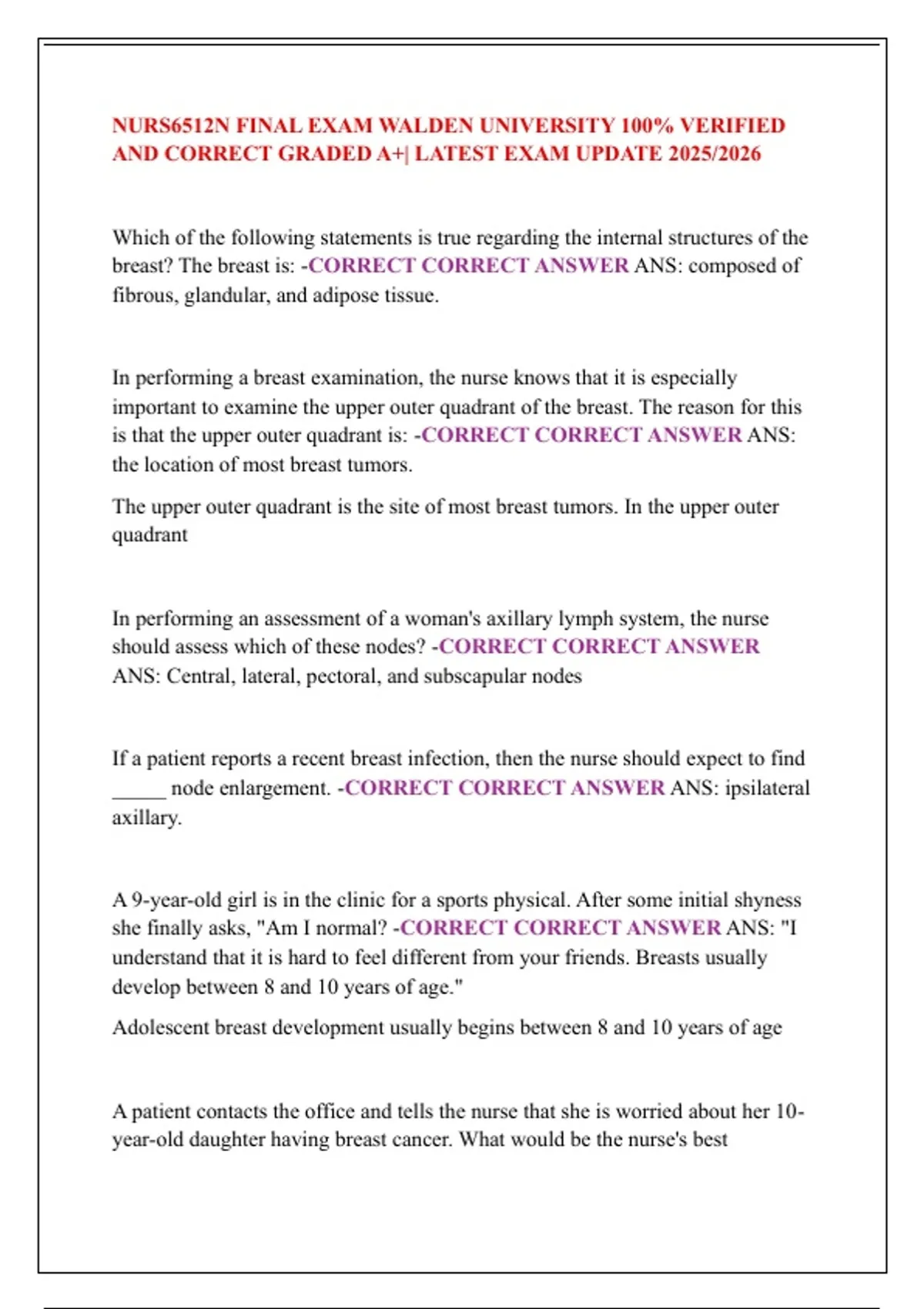 NURS6512N FINAL EXAM WALDEN UNIVERSITY 100% VERIFIED AND CORRECT GRADED A+| LATEST EXAM UPDATE 2025/2026
