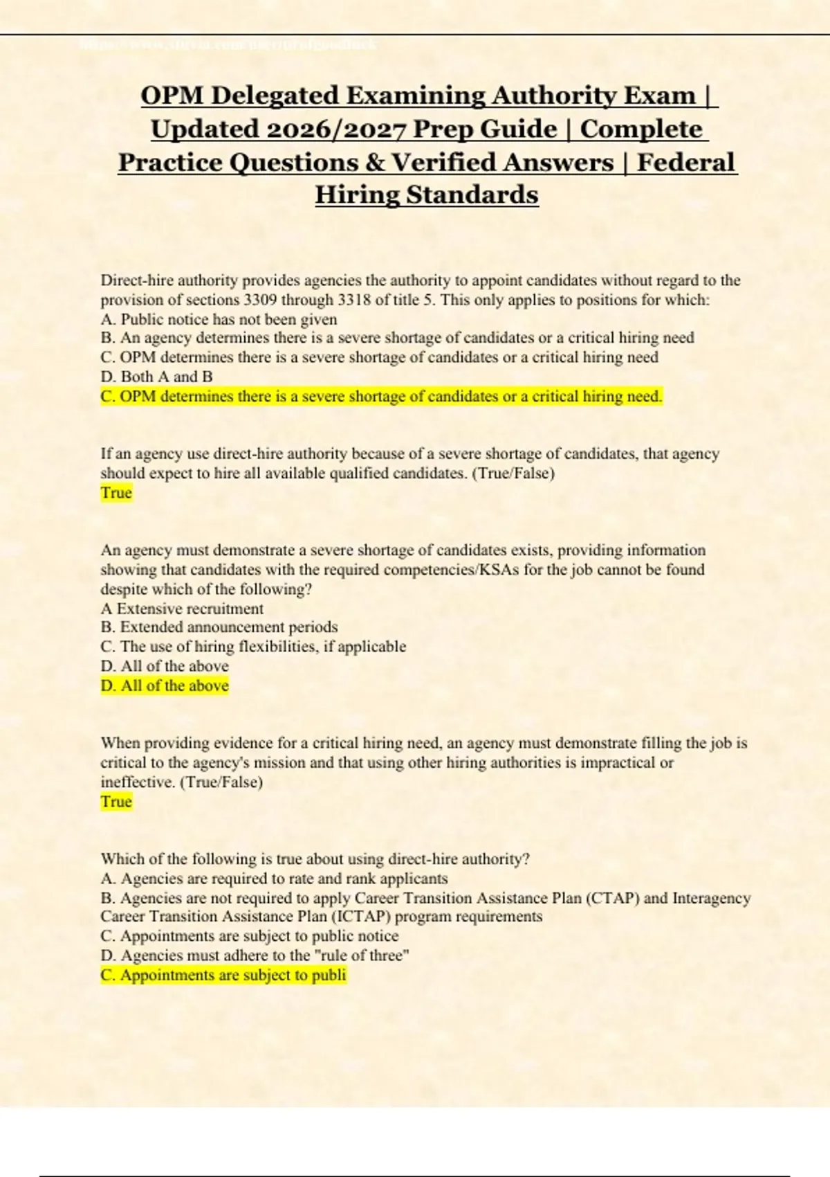 OPM Delegated Examining Authority (DEA) Certification Exam — Updated 2026/2027 Study Bundle Package | Comprehensive Practice Questions with Verified Learning Solutions | Federal Hiring Standards Review