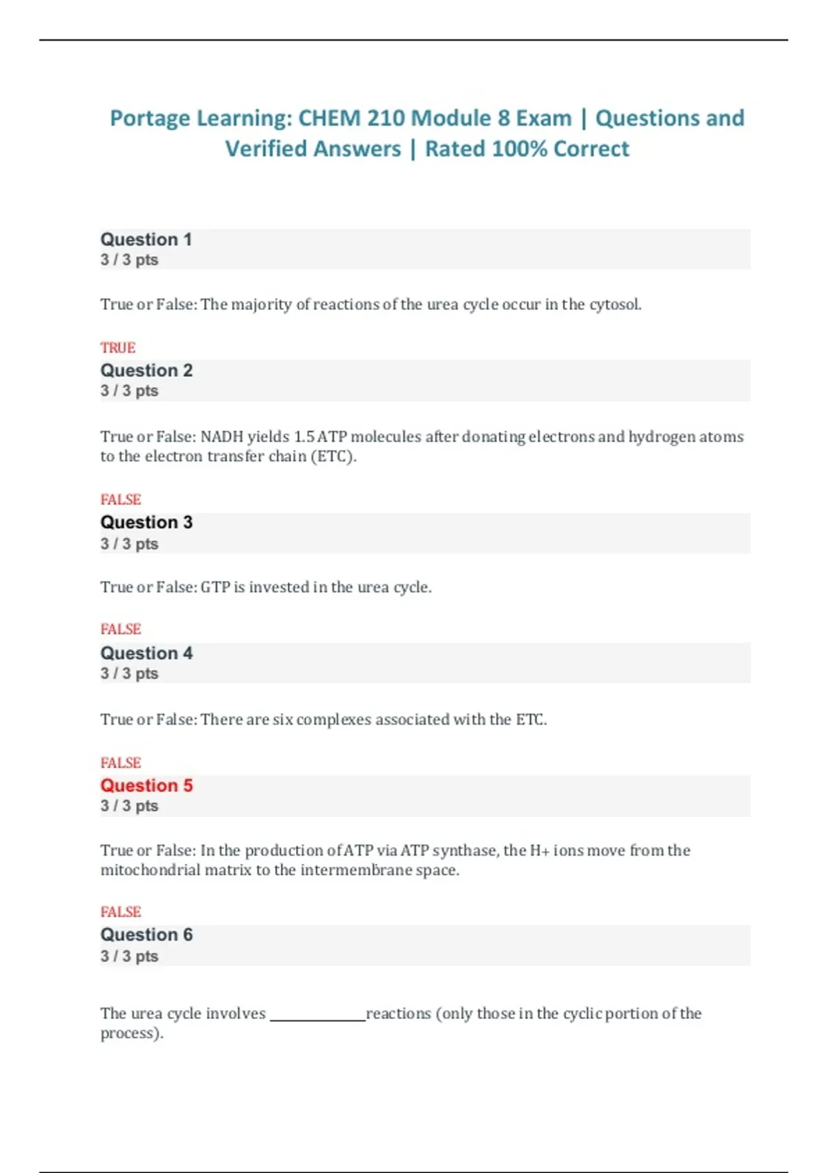 Portage Learning CHEM 210 – Modules 1–8 and Final Exam Questions and Verified Answers (Rated 100% Correct) Portage Learning CHEM 210 – Final Exam Questions and Verified Answers (Rated 100% Correct) Portage Learning CHEM 210 – Module 6 Exam Questions and Verified Answers (Rated 100% Correct) Portage Learning – CHEM 210 General Chemistry | Module 8 E