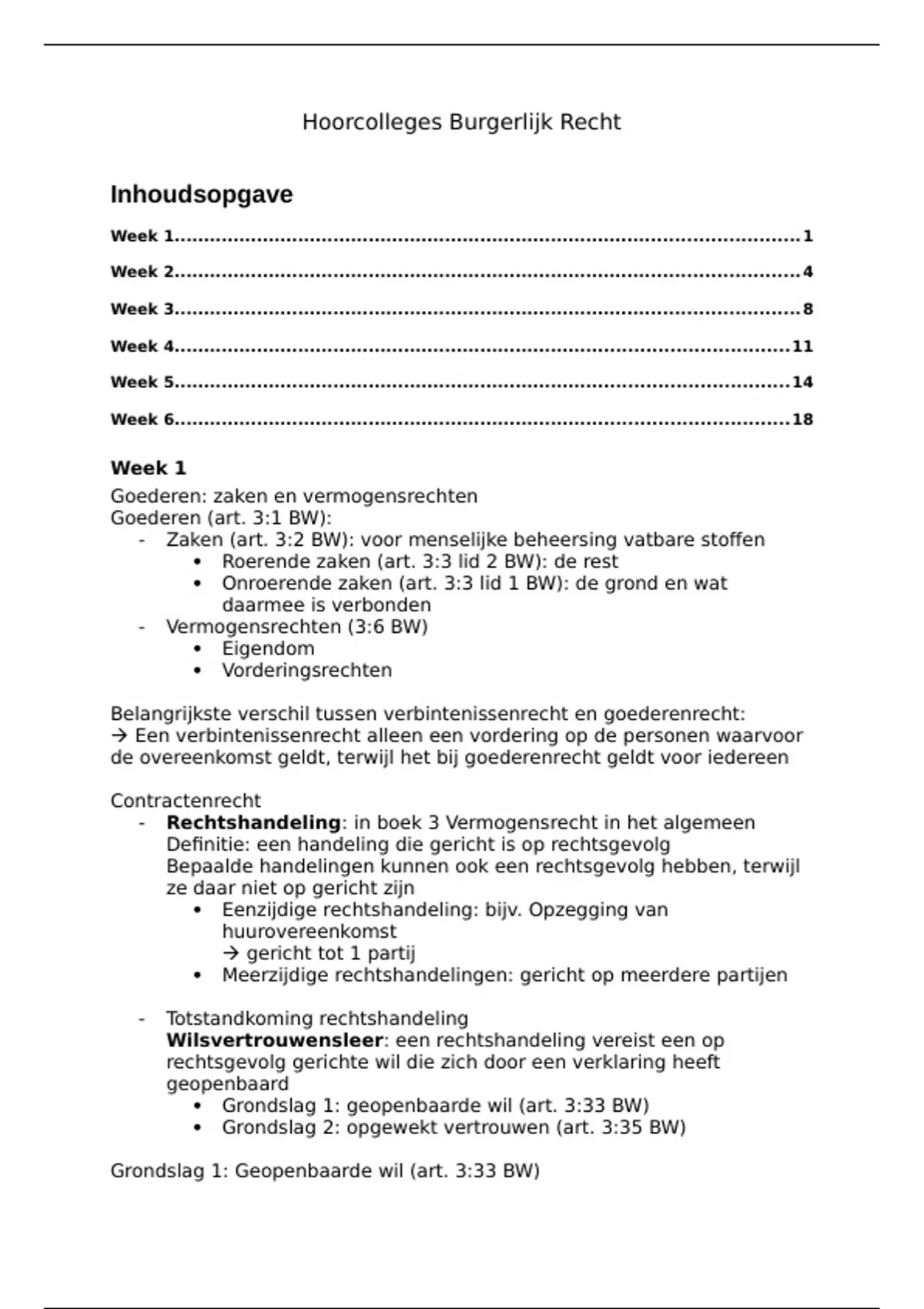Hoorcollege aantekeningen Inleiding Burgerlijk Recht van alle weken!