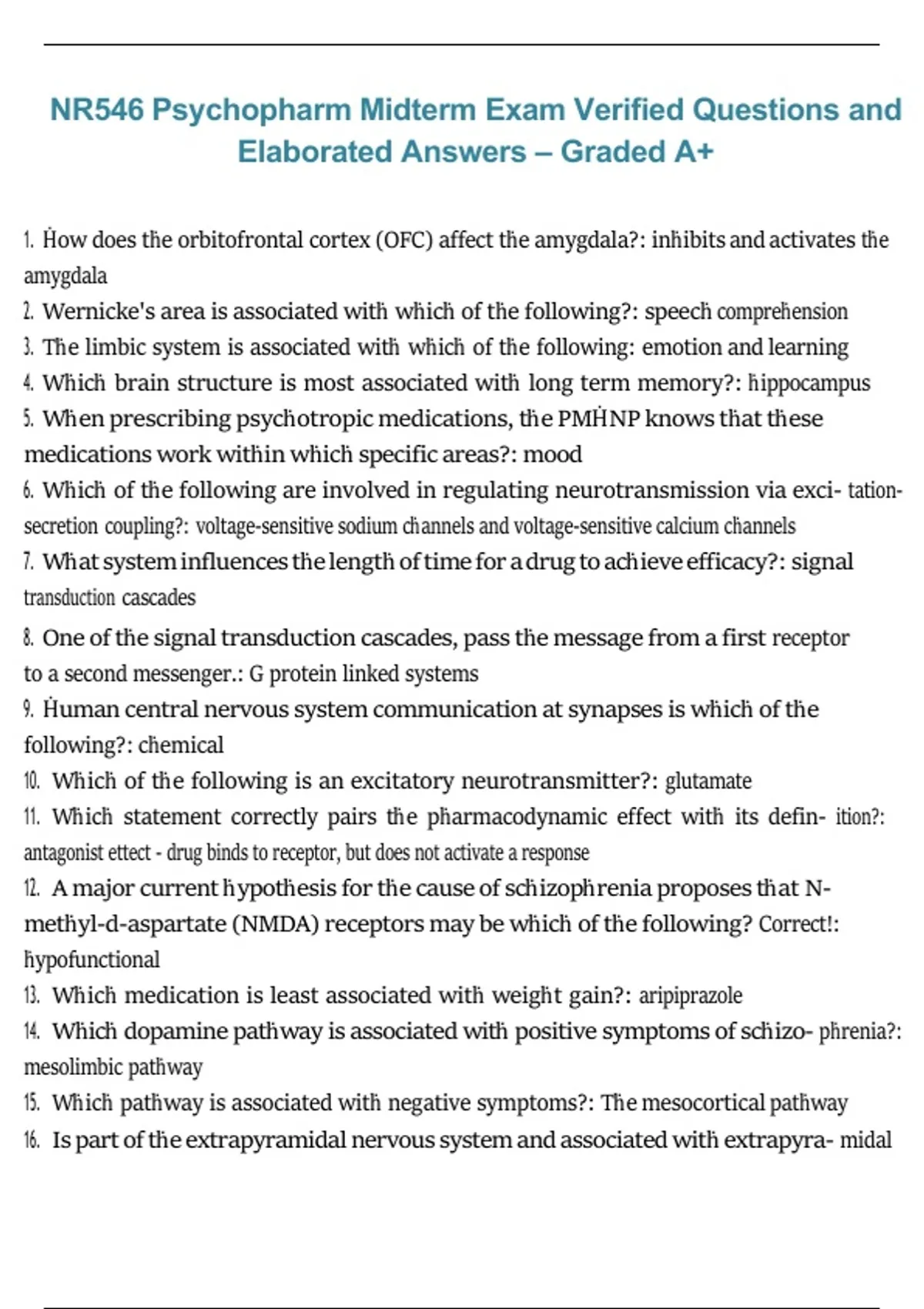 NR546 Psychopharmacology, 2026/2027 – midterm exam with verified questions and elaborated answers graded A+ NR546 Advanced Pharmacology (Psychopharmacology) – midterm study guide with complete solutions 2026/2027 NR546 Psychopharmacology, 2026/2027 – final practice exam with actual questions and complete verified solutions NR546 Psychopharmacology