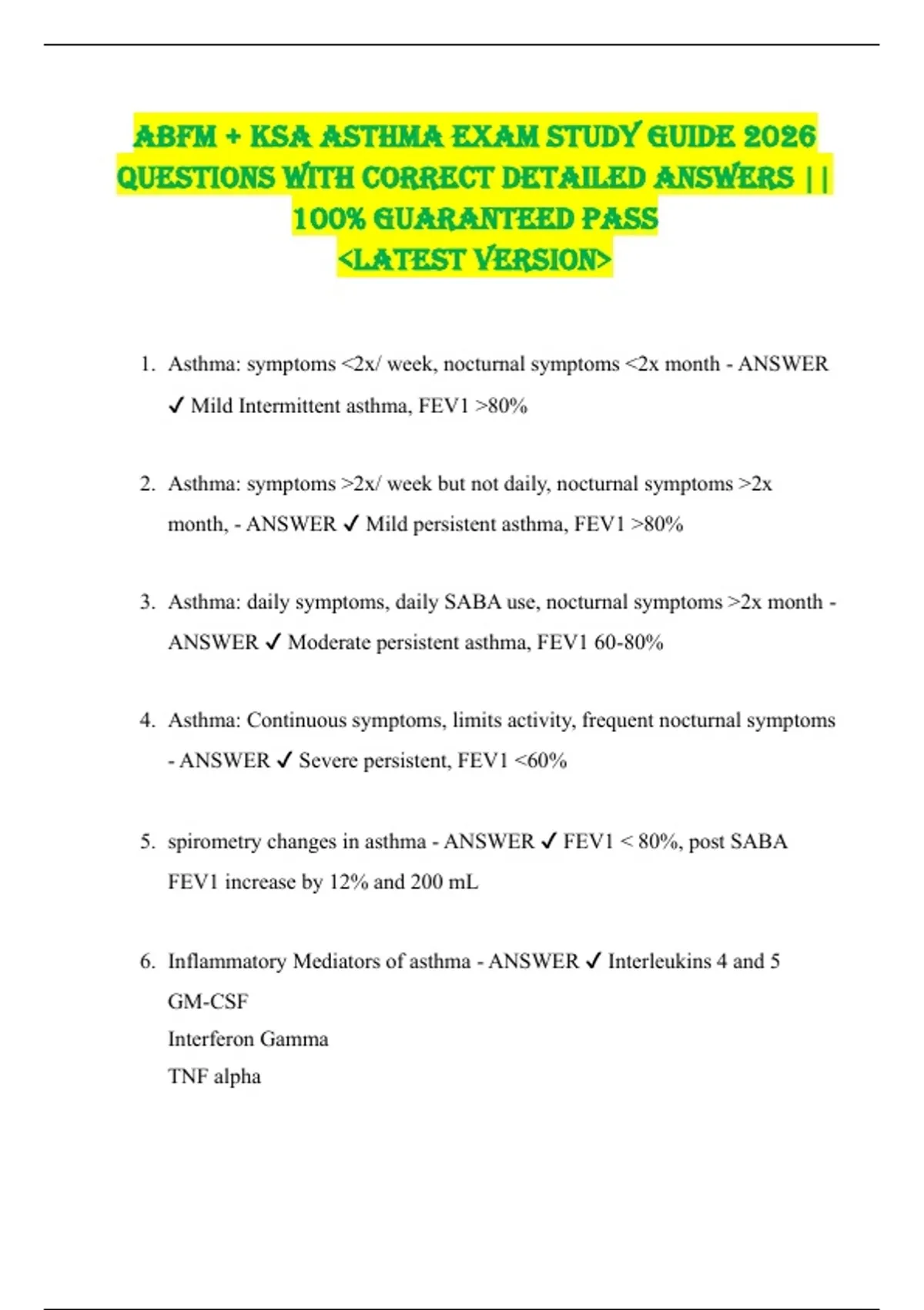 ABFM + KSA ASthMA ExAM Study GuidE 2026 QuEStionS with CorrECt dEtAilEd AnSwErS || 100% GuArAntEEd PASS lAtESt VErSion || KSA ASTHMA EXAM STUDY GUIDE 2026/2027 ACCURATE QUESTIONS WITH CORRECT DETAILED ANSWER || 100% GUARANTEED PASS <RECENT VERSION>