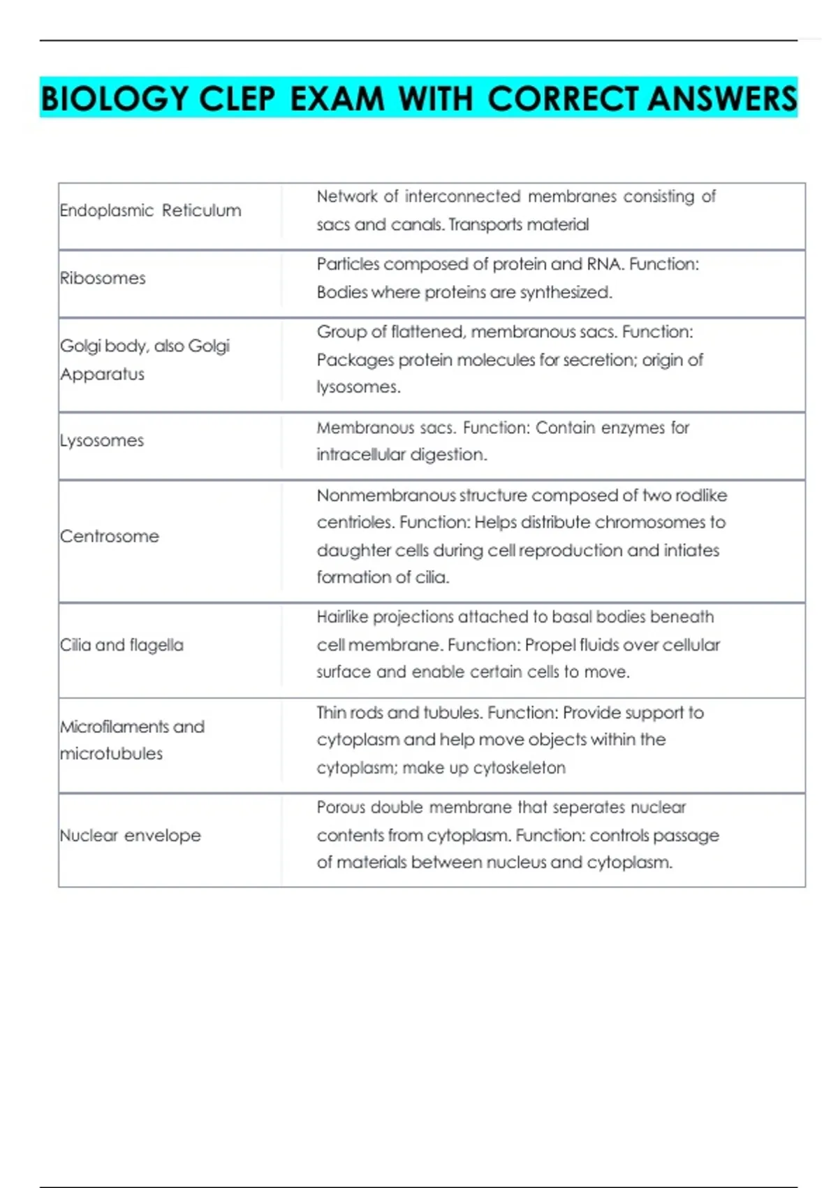 BIOLOGY CLEP EXAM WITH CORRECT ANSWERS 2 Exam (elaborations) Official Biology Clep Test - College Board Exam 100% Solved 3 Exam (elaborations) Biology CLEP Questions with Correct Answers | New Updat