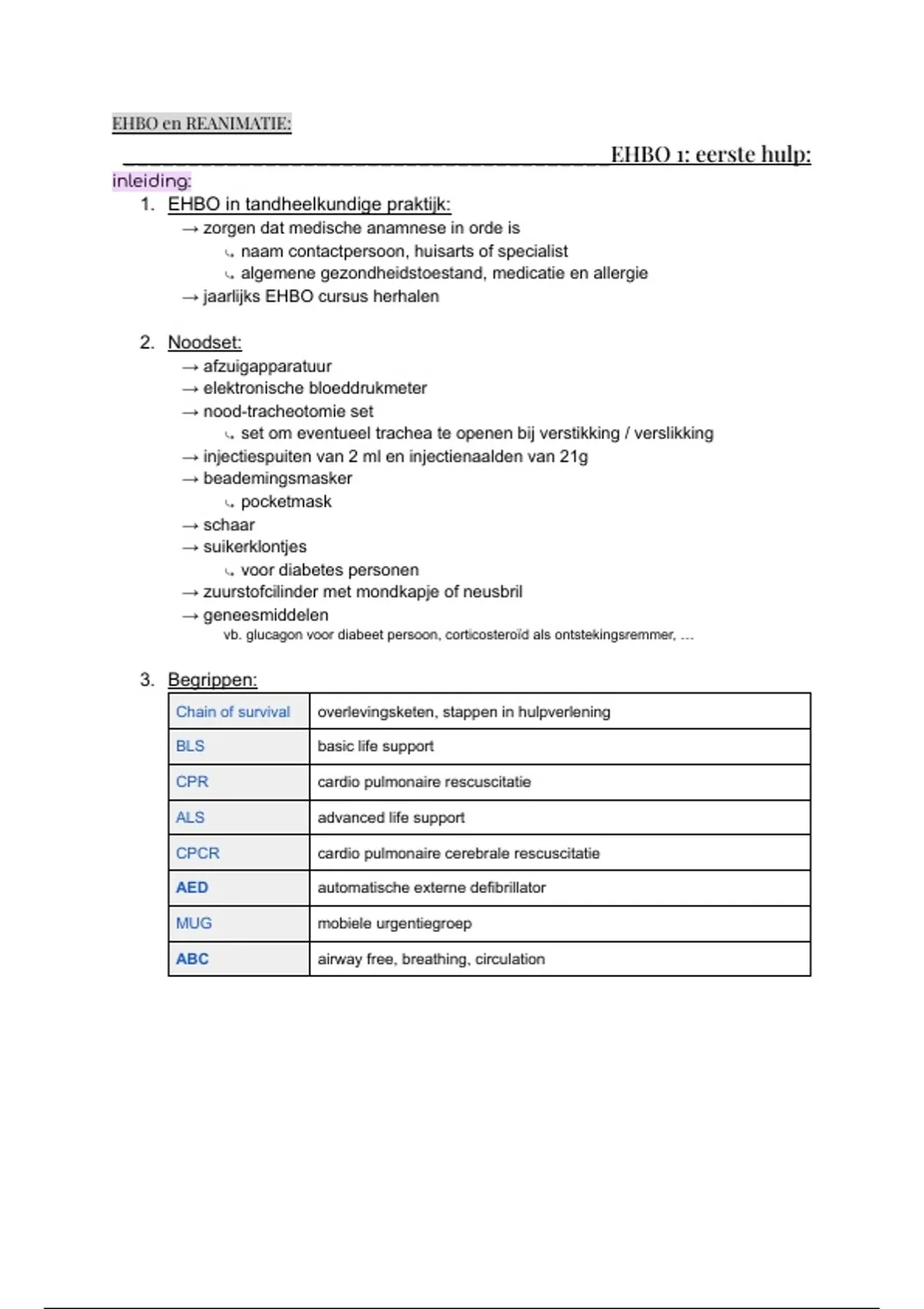EHBO en reanimatie samenvatting mondzorg bij bijzondere doelgroep