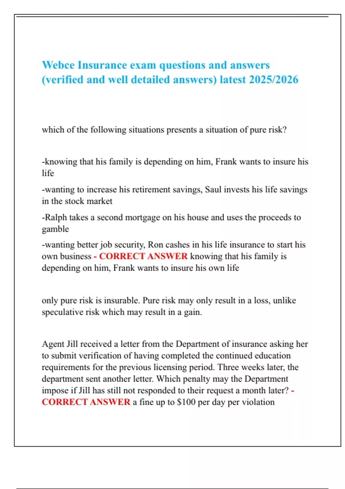 WEBCE INSURANCE TEST | QUESTIONS AND ANSWERS | VERIFIED ANSWERS GRADED A+ | LATEST EXAM UPDATE