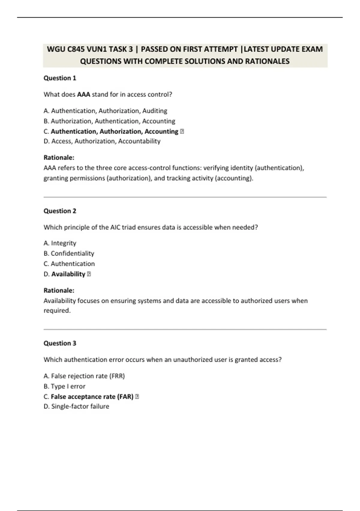 WGU C845 (ISC)2 CERTIFIED IN CYBERSECURITY - EXAM PREP EXAM QUESTIONS WITH COMPLETE SOLUTIONS AND RATIONALES
