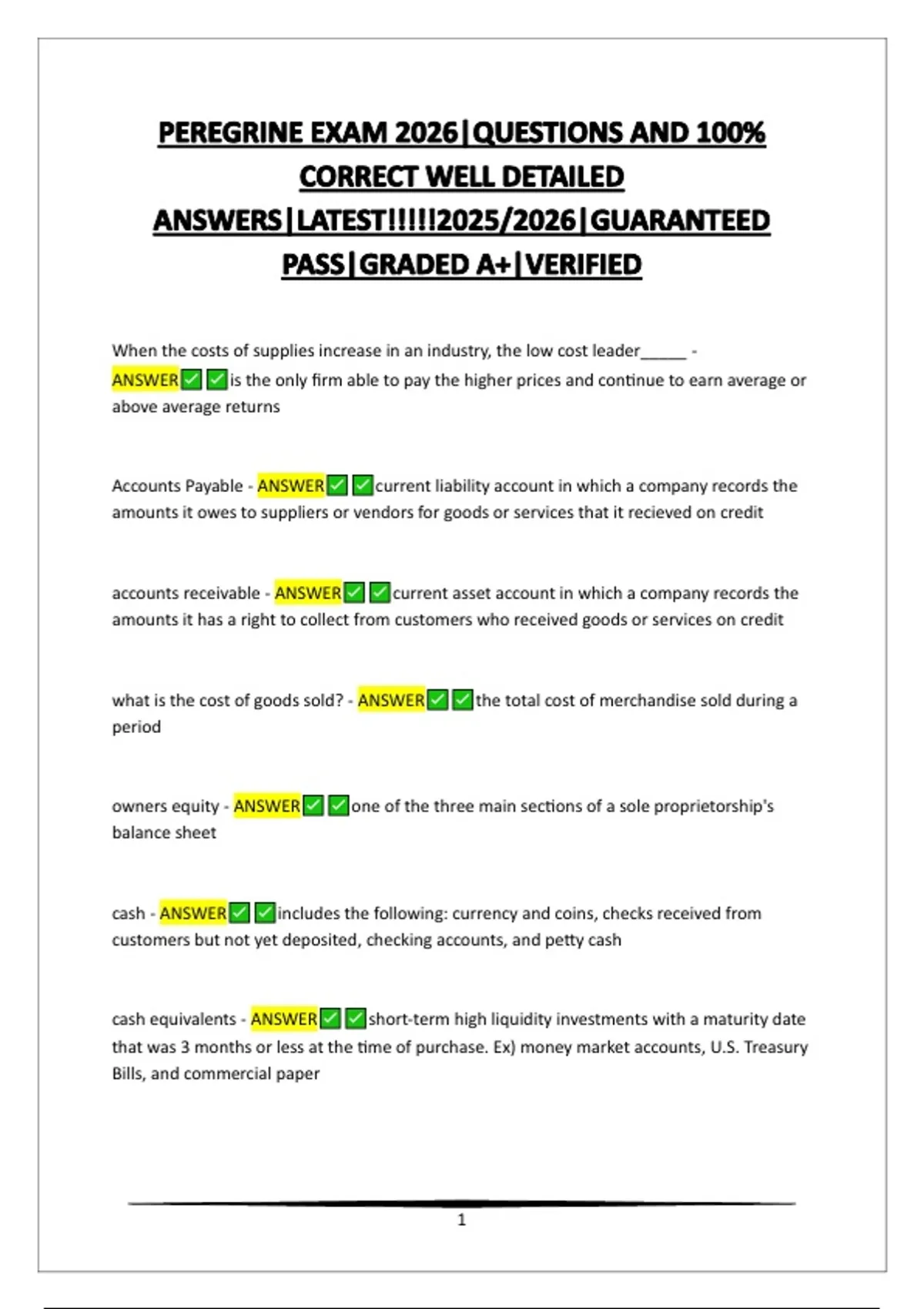 PEREGRINE EXAM 2026|QUESTIONS AND 100% CORRECT WELL DETAILED ANSWERS|LATEST!!!!!2025/2026|GUARANTEED PASS|GRADED A+|VERIFIED