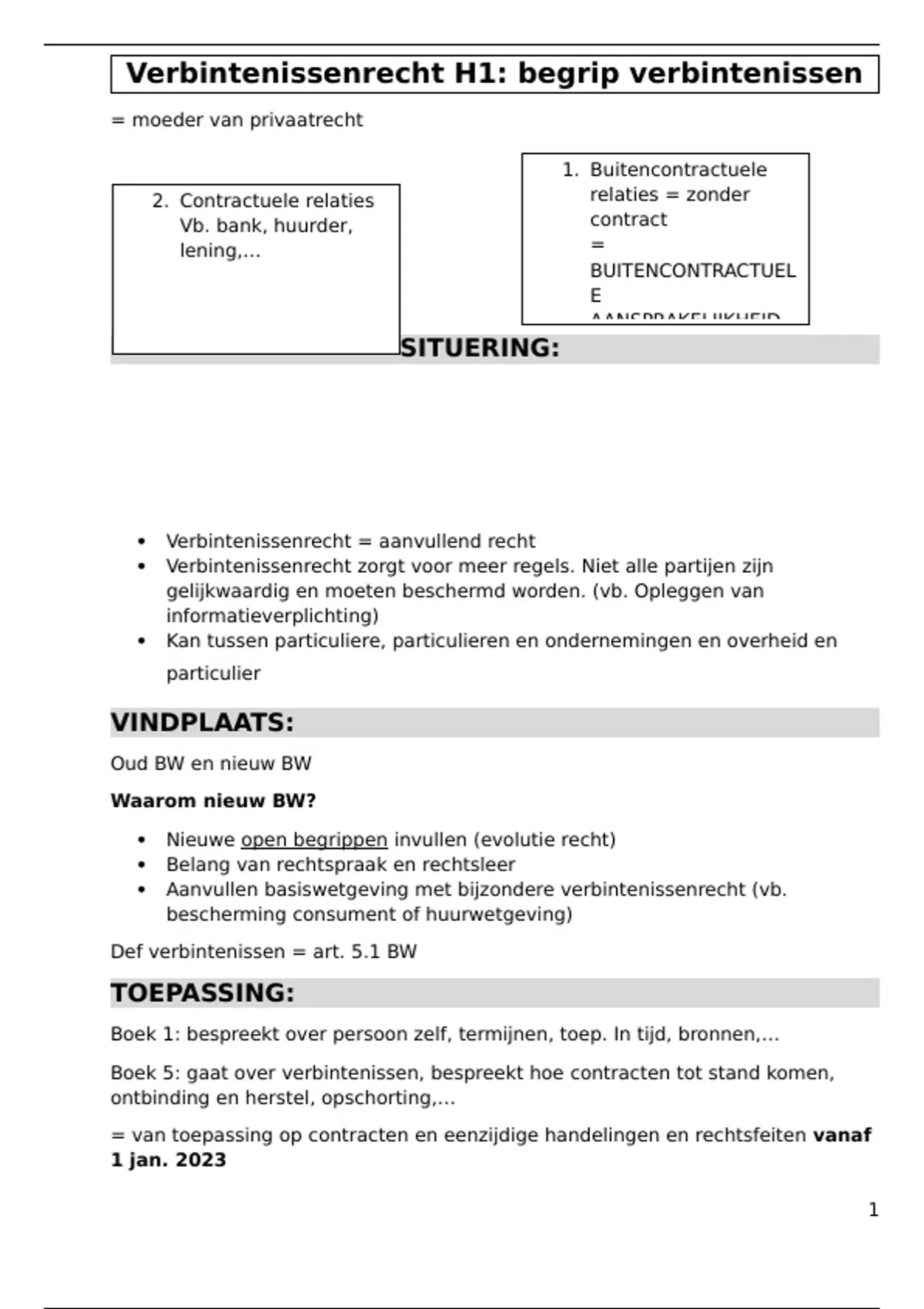 Samenvatting: H1 - inleiding verbintenissenrecht