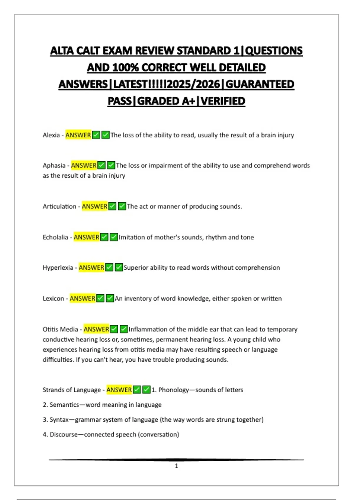ALTA CALT EXAM REVIEW STANDARD 1|QUESTIONS AND 100% CORRECT WELL DETAILED ANSWERS|LATEST!!!!!2025/2026|GUARANTEED PASS|GRADED A+|VERIFIED