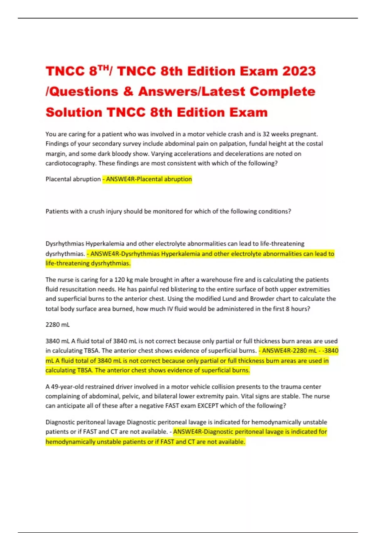 TNCC 8TH/ TNCC 8th Edition Exam 2023 /Questions & Answers/Latest Complete Solution TNCC 8th Edition Exam