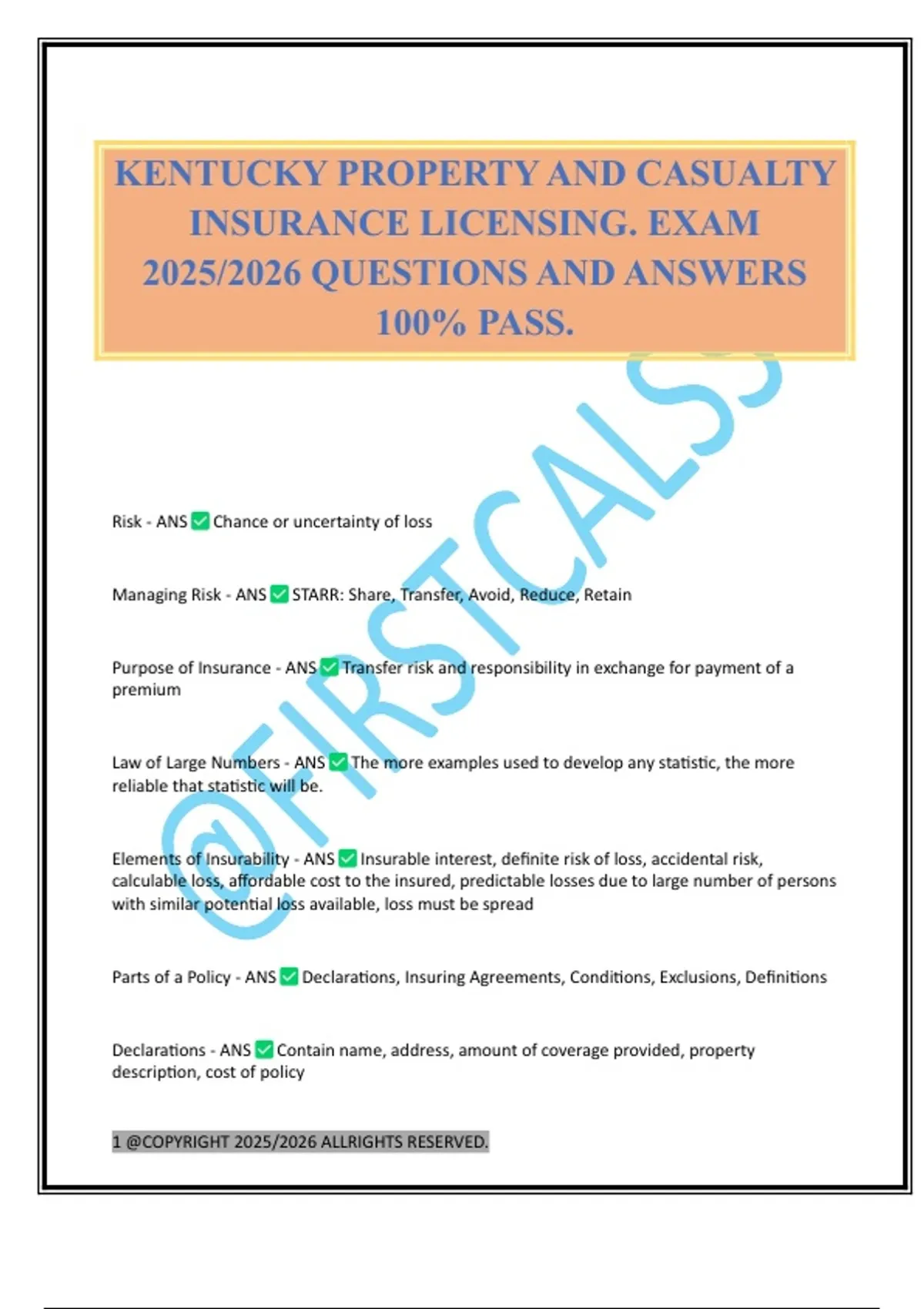 KENTUCKY PROPERTY AND CASUALTY INSURANCE LICENSING. EXAM 2025/2026 QUESTIONS AND ANSWERS 100% PASS.