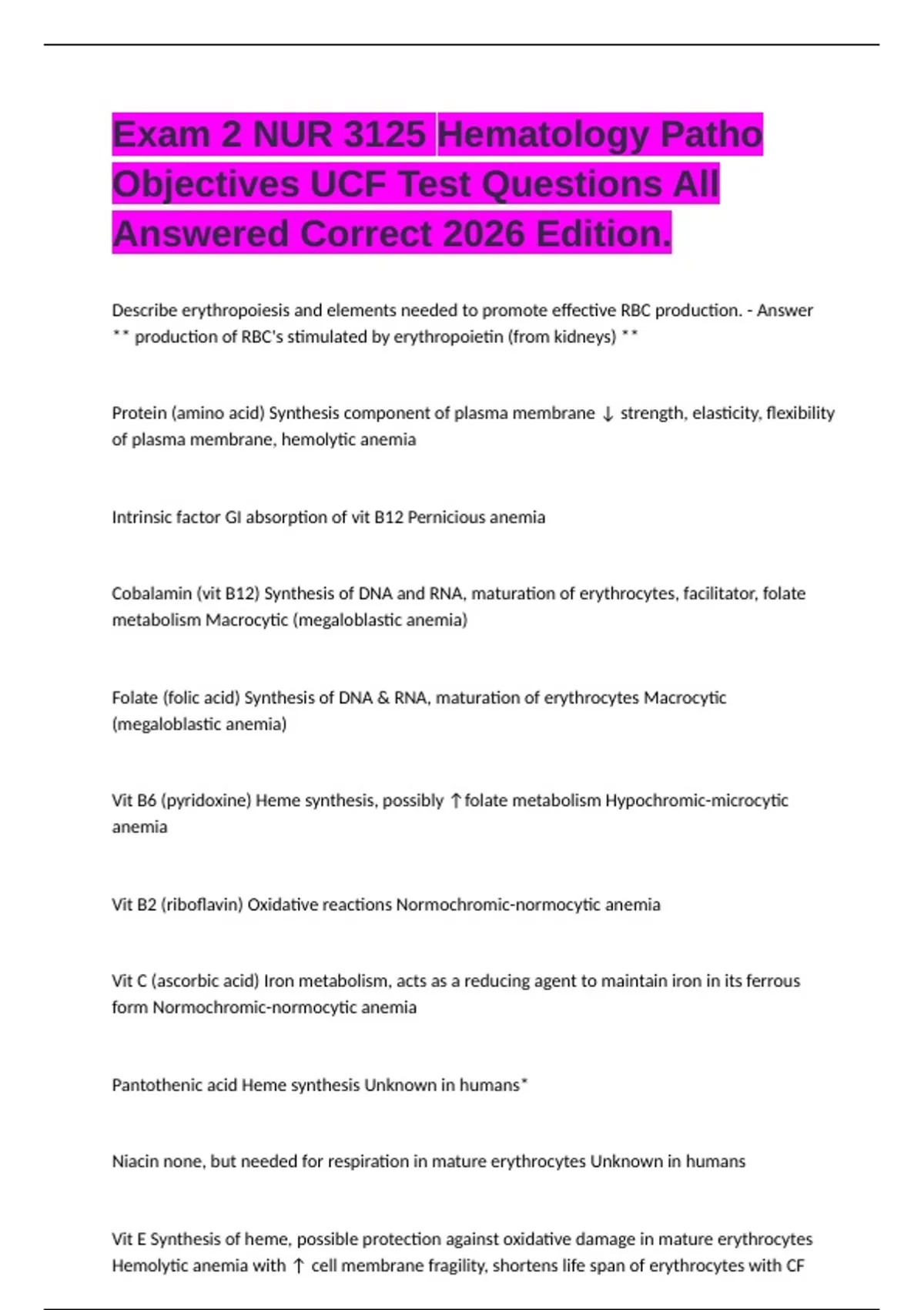 1 Exam (elaborations) UCF Pathophysiology Exam 1 Test Questions And 100% Correct Answers 2026. 2 Exam (elaborations) NURS 3125 – Midterm Final Exam and Already Solved Solutions 2026 Edition. 3 Exam (elaborations) NUR 3125 UCF Exam 1 Study Guide Questions with Actual Answers 2026 Updated.