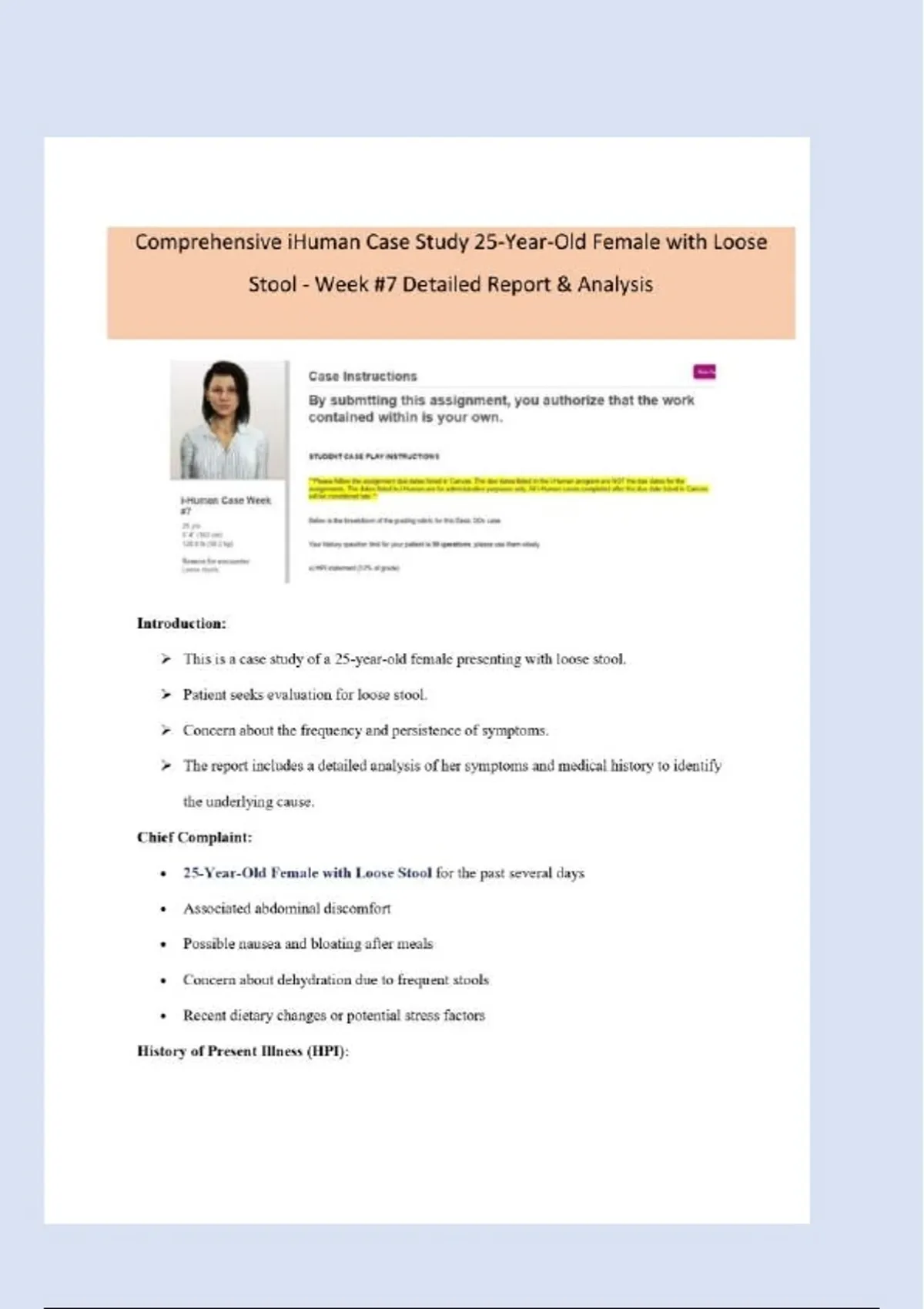 1 Exam (elaborations) i-Human Case Study Week 7 – 25-Year-Old Female with Loose Stools | Walden University 2026 2 Exam (elaborations) Walden University i-Human Week 7 Case Study: Loose Stool Differential Diagnosis and Management 3 Exam (elaborations) i-Human Case Study Week 7 – 4 Exam (elaborations) iHuman Week #7 Case Study – 25-Year-Old Female