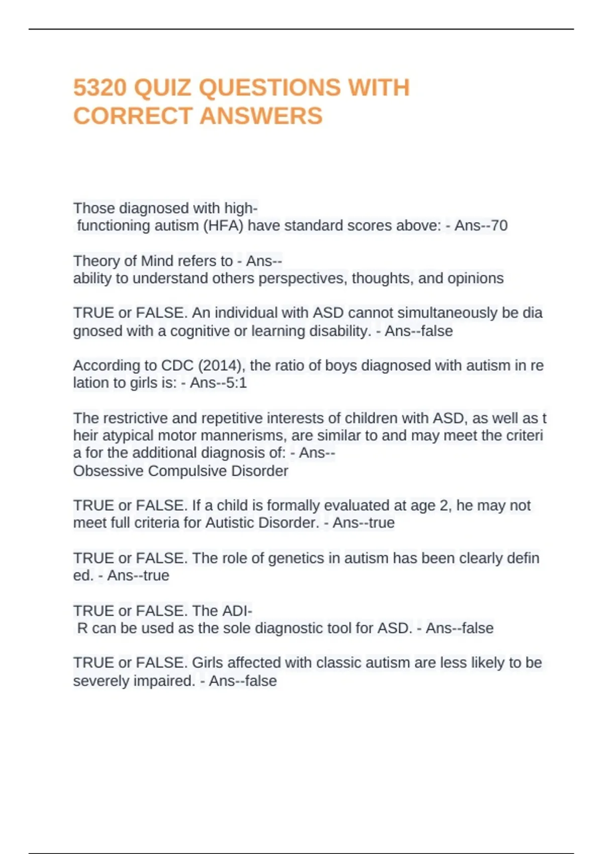 5320 QUIZ QUESTIONS WITH CORRECT ANSWERS