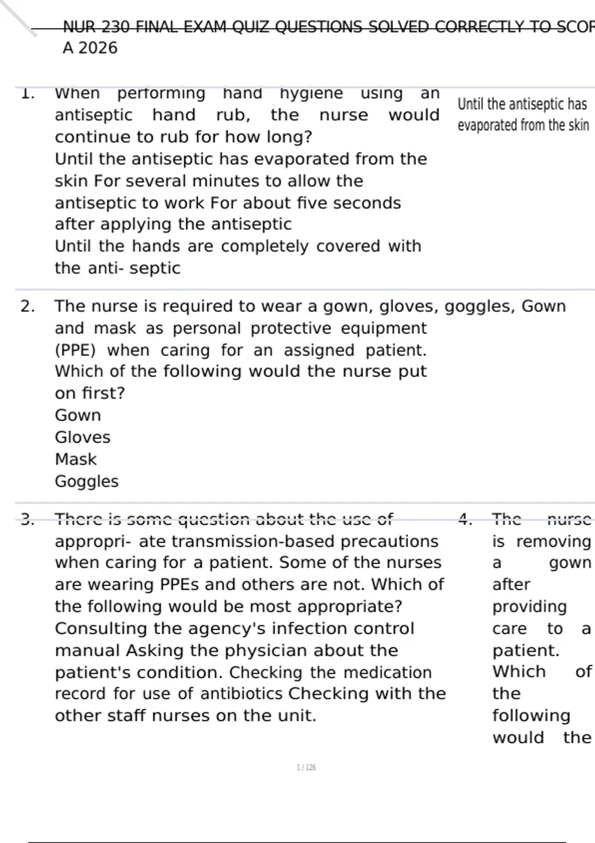 NUR 230 Exam 3 Questions With Already Solved Correctly Answers 2026!! NUR 230 Final Exam – Questions With Correct Answers | Updated | LatestUpdat NUR 230 Exam 1 SHERPATH Questions With All Correct Answers 2026 LateUpdate!!!