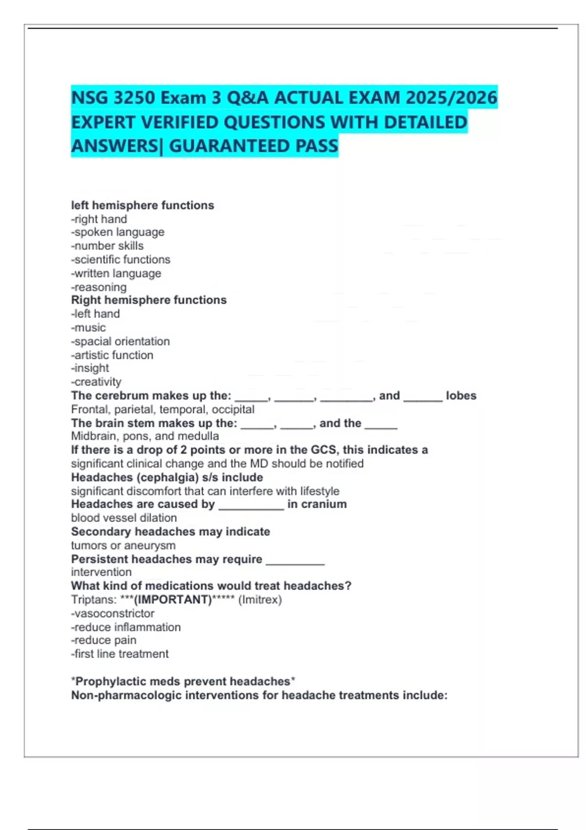 NSG 3250 Exam,2 Q&A (Advanced Pathophysiology)