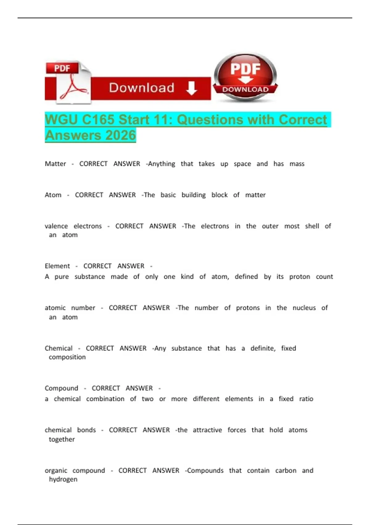 WGU C165 Section 2 Chemistry Lesson 1-3 Questions with Correct Answers 2026