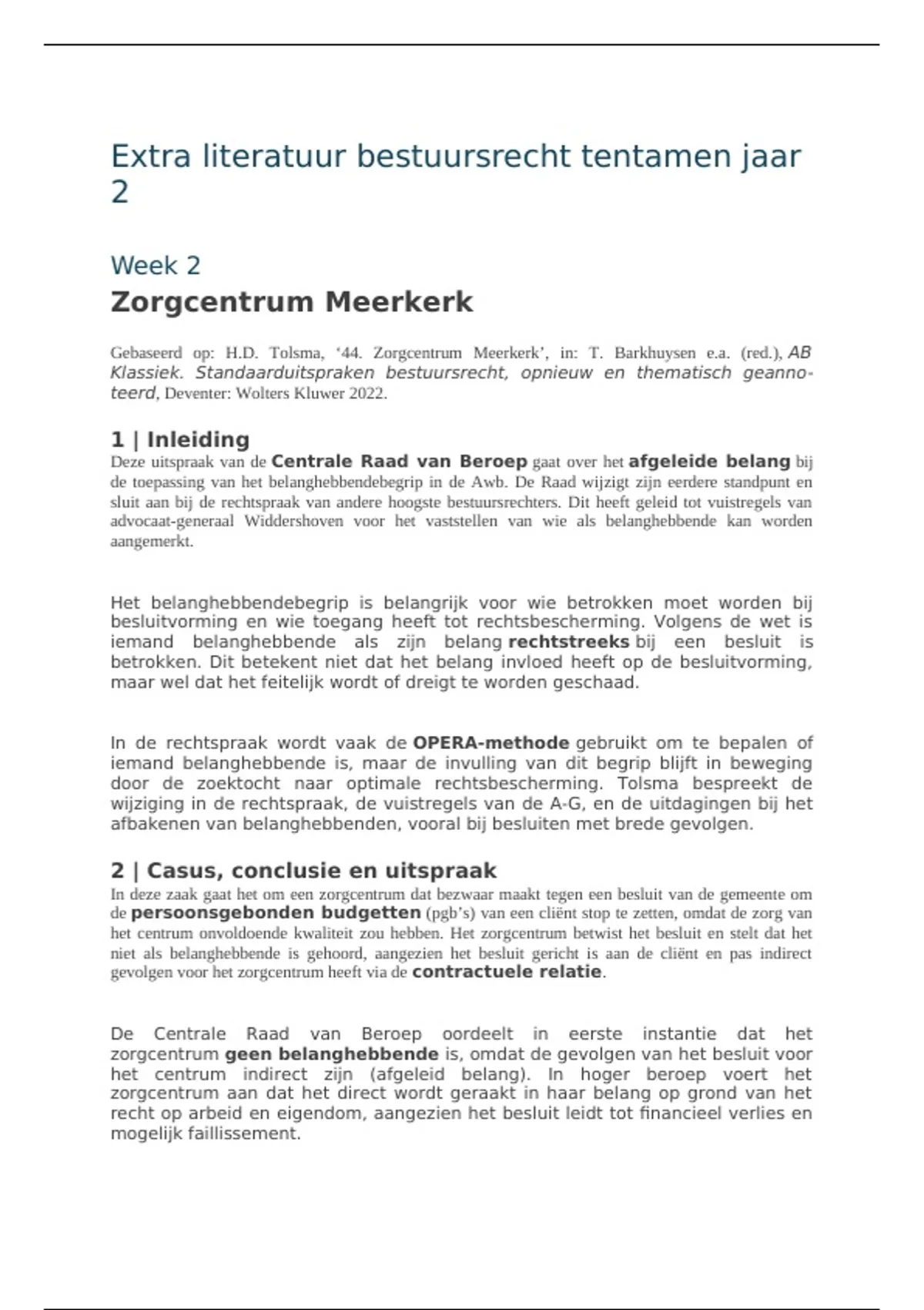 Extra literatuur en oefentoets van bestuursrecht jaar 2 universiteit utrecht
