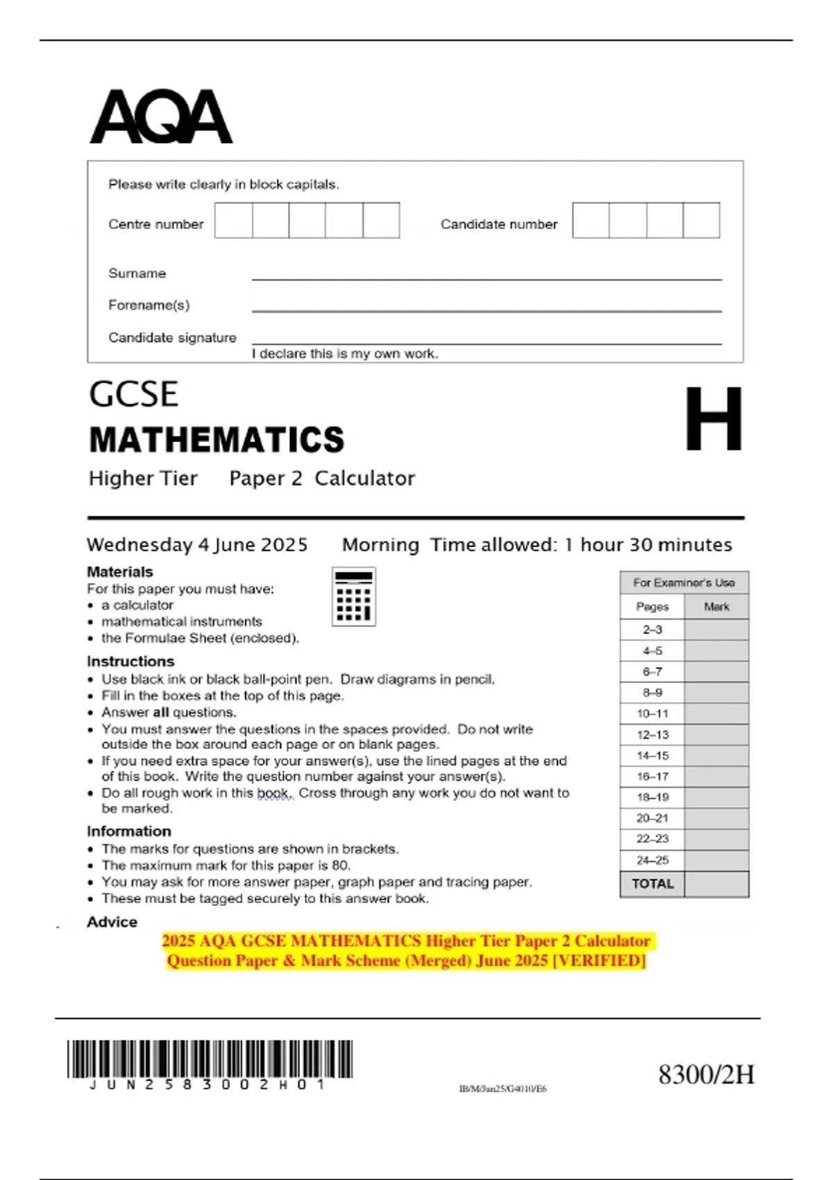 May–June 2025 AQA GCSE Mathematics Higher Tier | Combined Question Papers & Mark Schemes