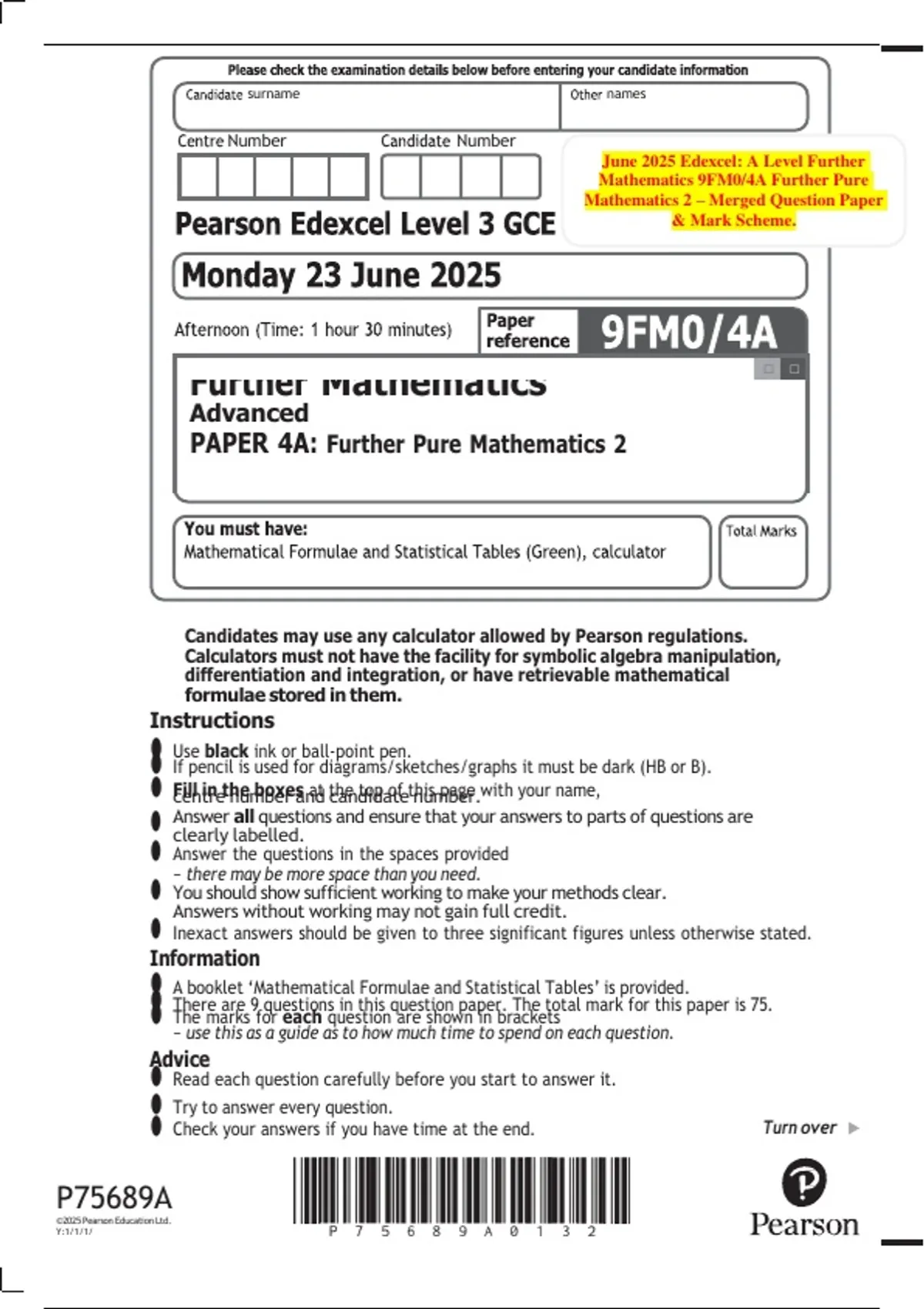 June 2025 Edexcel A Level Further Mathematics (9FM0) Paper 4 | Combined Question Papers & Mark Schemes