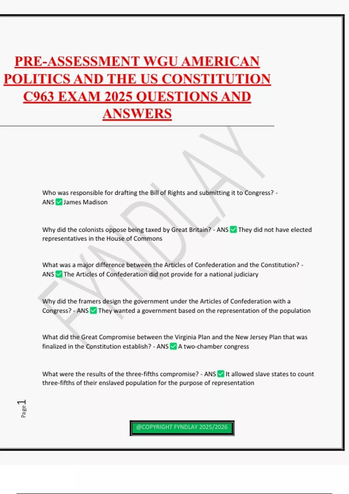 PRE-ASSESSMENT WGU AMERICAN POLITICS AND THE US CONSTITUTION C963 EXAM QUESTIONS AND ANSWERS 100% PASS