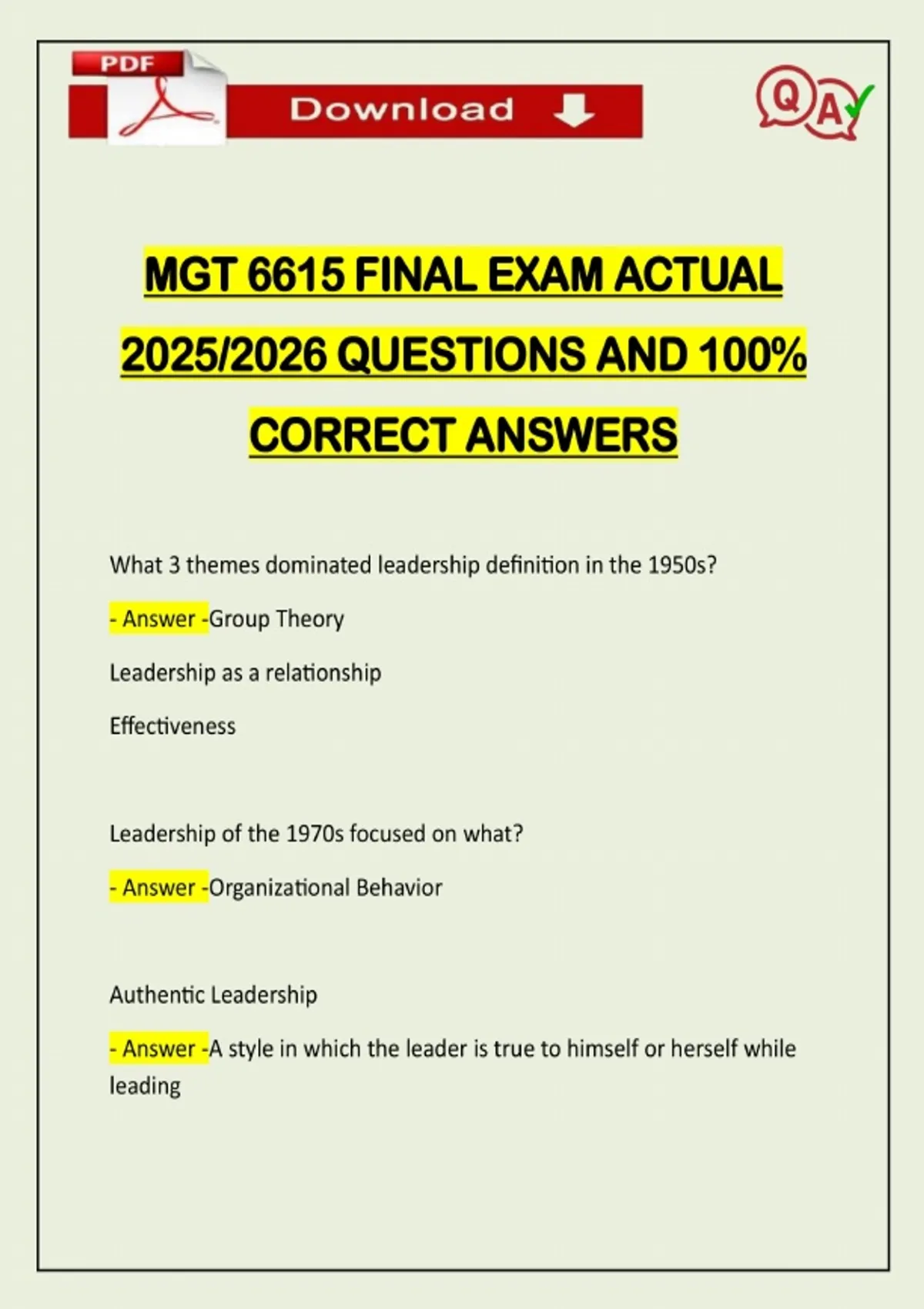 BUNDLED EXAMS::: MGT 6615 EXAMS WITH FINALS ACTUAL 2026 UPDATE