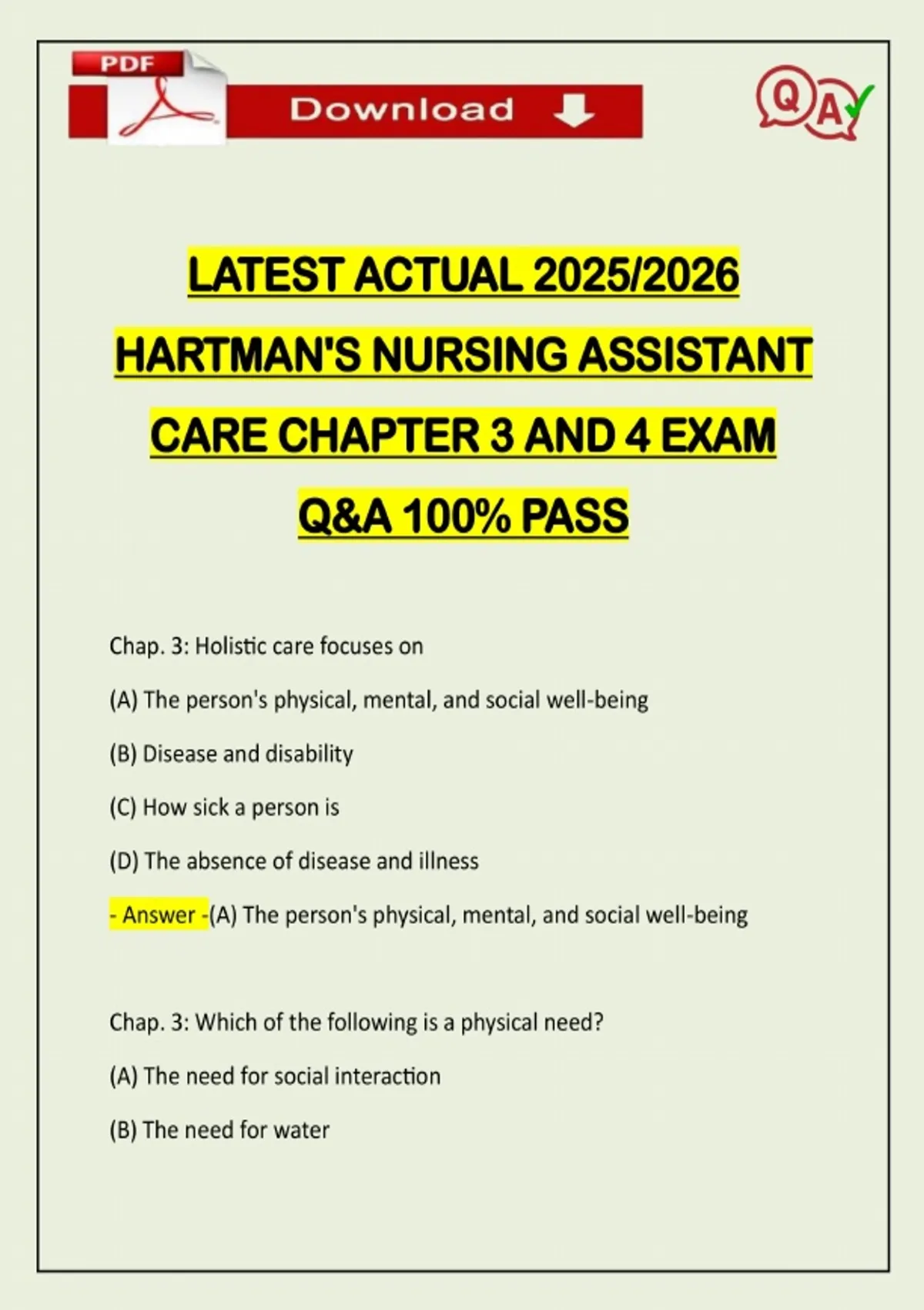 PACKAGE DEAL::: HARTMAN'S NURSING ASSISTANT CARE EXAMS ACTUAL 2026 UPDATE