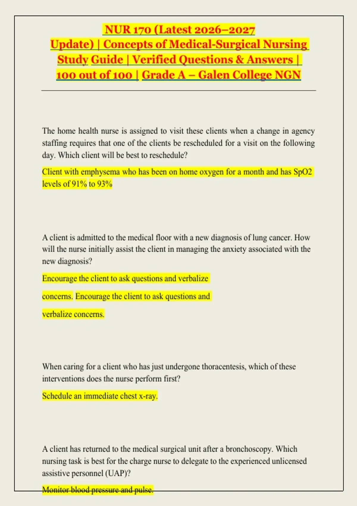 NSG 4100 (Latest 2026/ 2027 Update) Nursing Practice - Adult Health III Guide| v