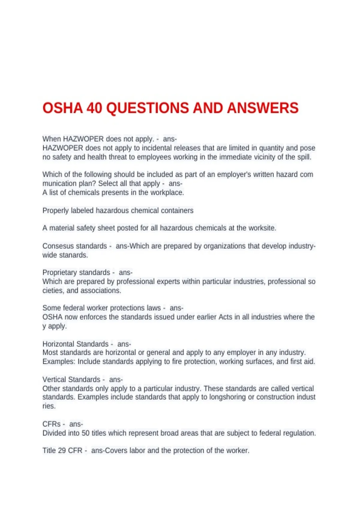 HAZWOPER 40 Final Exam (2026/2027 Update) questions and answers
