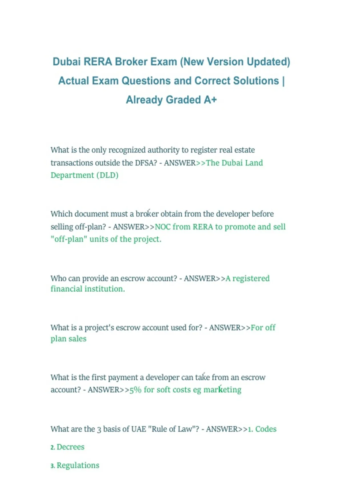 Real Estate Dubai RERA Broker Exam Practice Questions with 100% Verified Solutions | 2026/2027 A+ Guaranteed Study Guide Dubai RERA Broker Exam – Updated Questions and Correct Answers | 2026/2027 Rated A+ Study Resource Dubai RERA Broker Exam | Lately Updated Questions with 100% Correct Answers | Graded A+ 2026/2027 Dubai RERA Broker Exam – New Ver