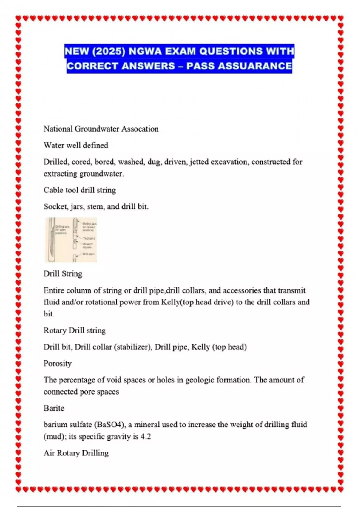 NGWA – GENERAL DRILLING EXAM STUDY QUESTIONS AND ANSWERS