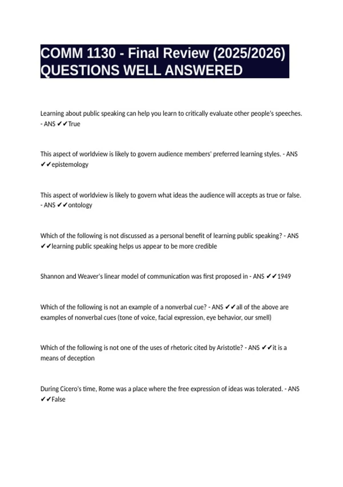 1 Exam (elaborations) Principles of Communications 1130 (chapter 1) questions and answers rated A+ 2025/2026 2 Exam (elaborations) Comm 1130 Midterm Vocab questions well answered 2025/2026 3 Exam (elaborations) COMM 1130 Final Exam questions well answered graded A+ 4 Exam (elaborations) COMM 1130 EXAM 3 questions well answered graded A+ 2025/202