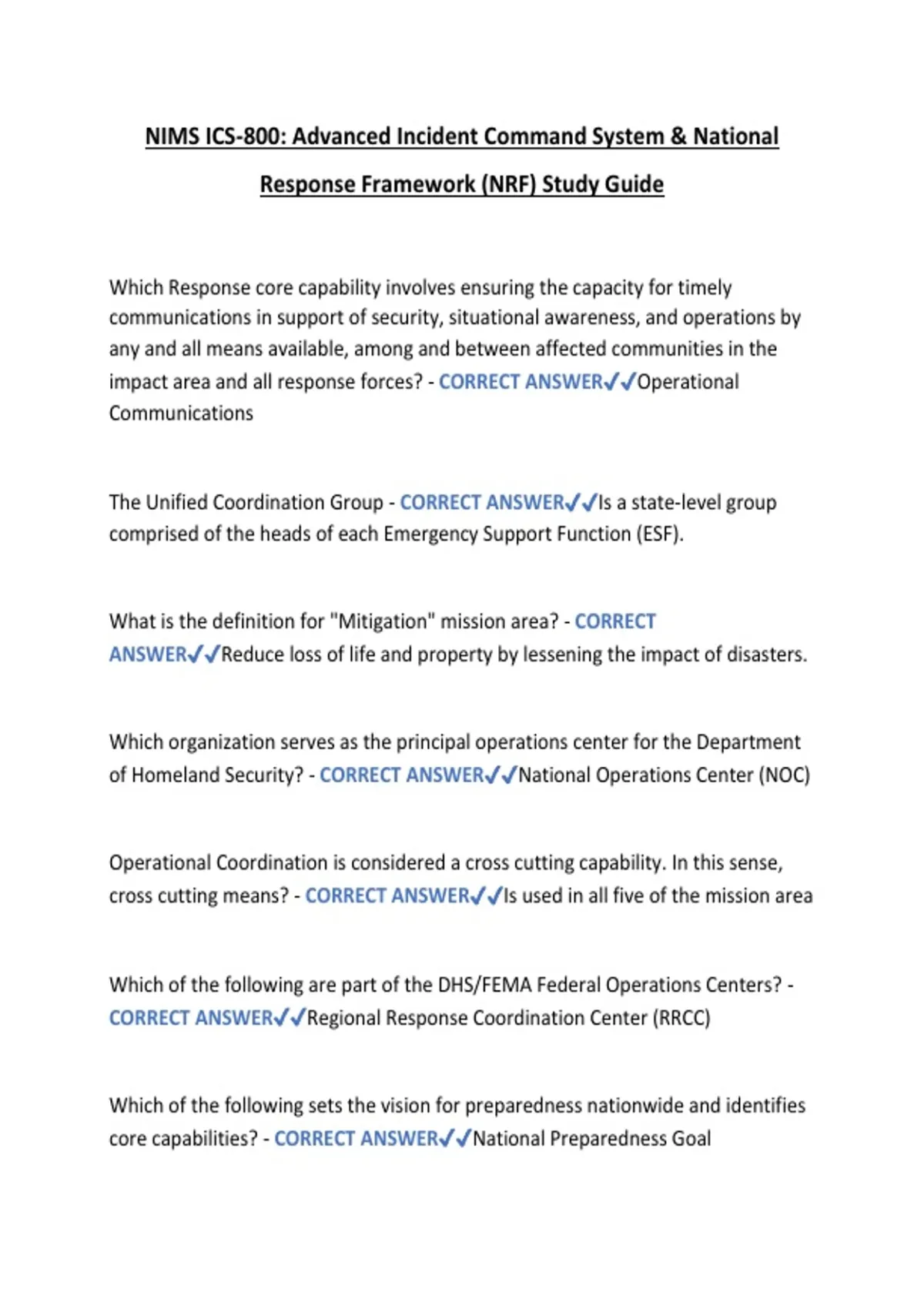 Ace the FEMA ICS-800 Advanced Incident Command System and National Response Framework (NRF) exams with this complete ICS-800 bundle! Includes all study guides, practice questions, and verified exam answers for ICS-800, ICS-800B, ICS-800C, ICS-800D / 800.d. Perfect for students, first responders, and emergency management professionals, this all-in-o