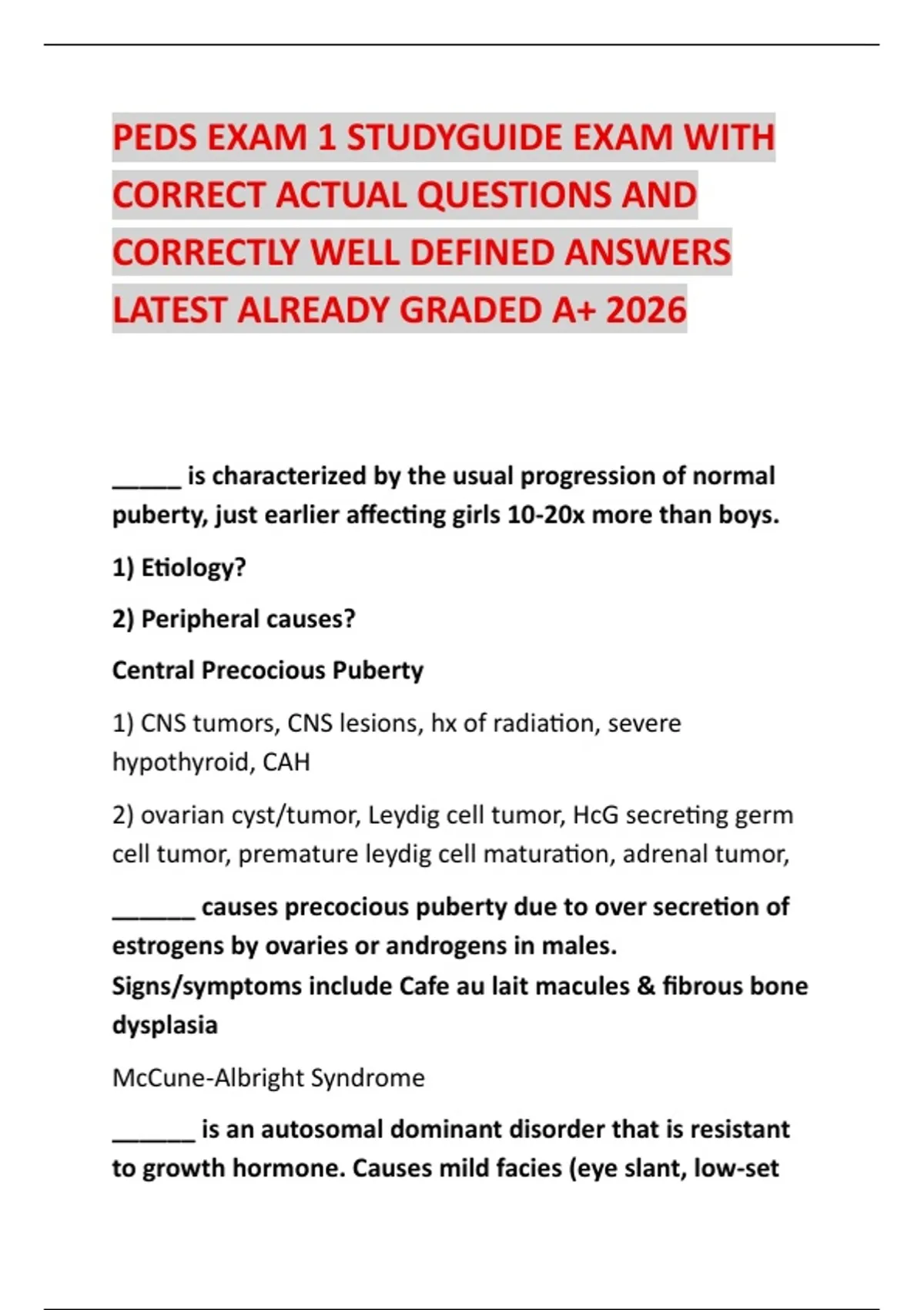 BUNDLE FOR PEDS EXAM (N4331) LATEST