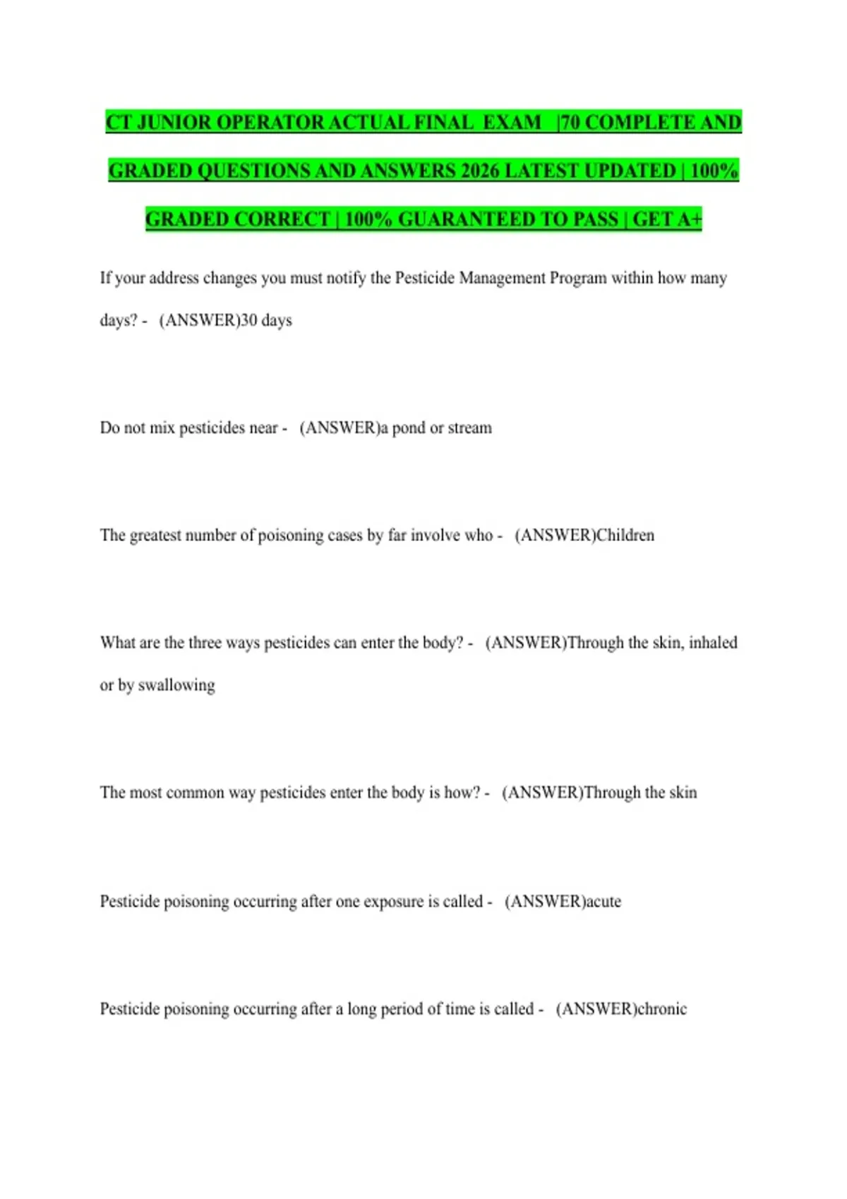 PACKAGE DEAL FOR CT JUNIOR OPERATOR ACTUAL FINAL EXAM | COMPLETE AND GRADED QUESTIONS AND ANSWERS 2026 LATEST UPDATED | 100% GRADED CORRECT | 100% GUARANTEED TO PASS | GET A+| 3 ITEMS
