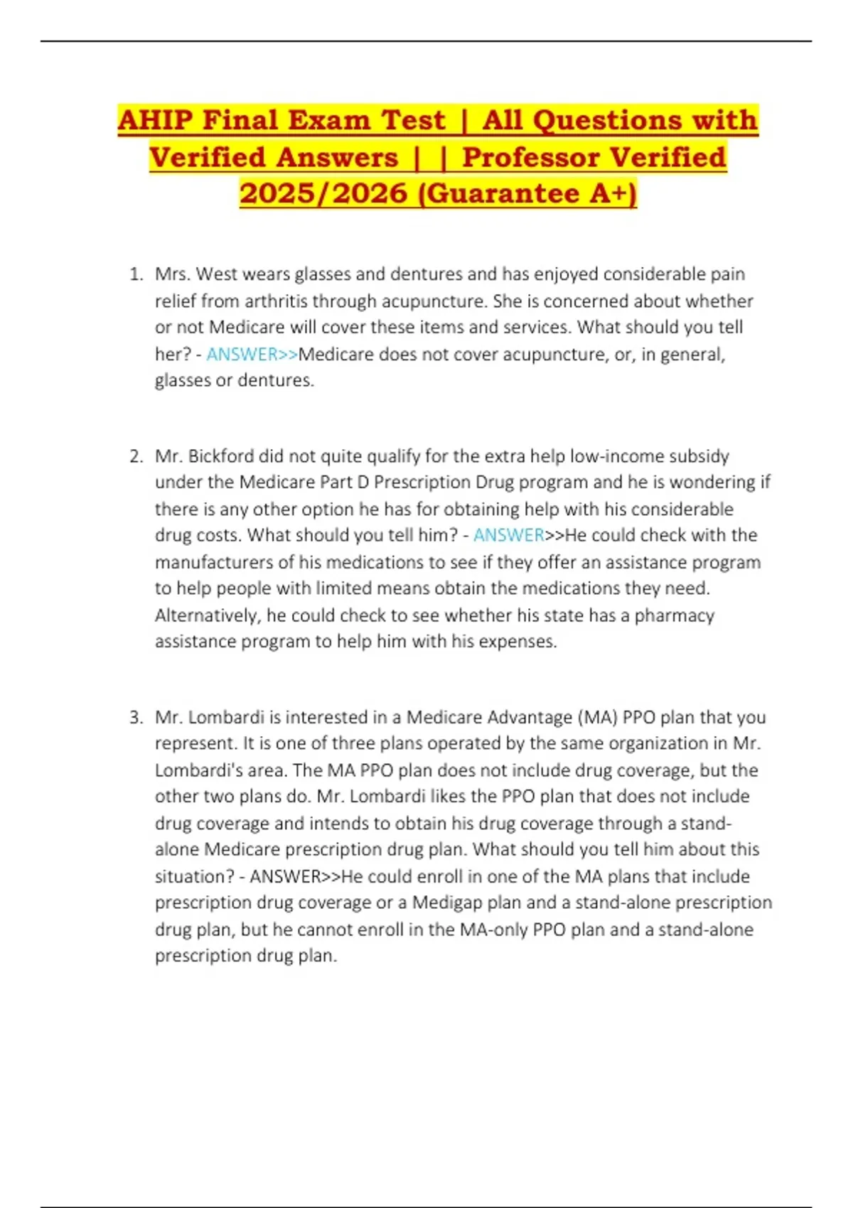 AHIP Final Exam Test (2025/2026) – All Verified Questions and Correct Answers for Guaranteed Pass