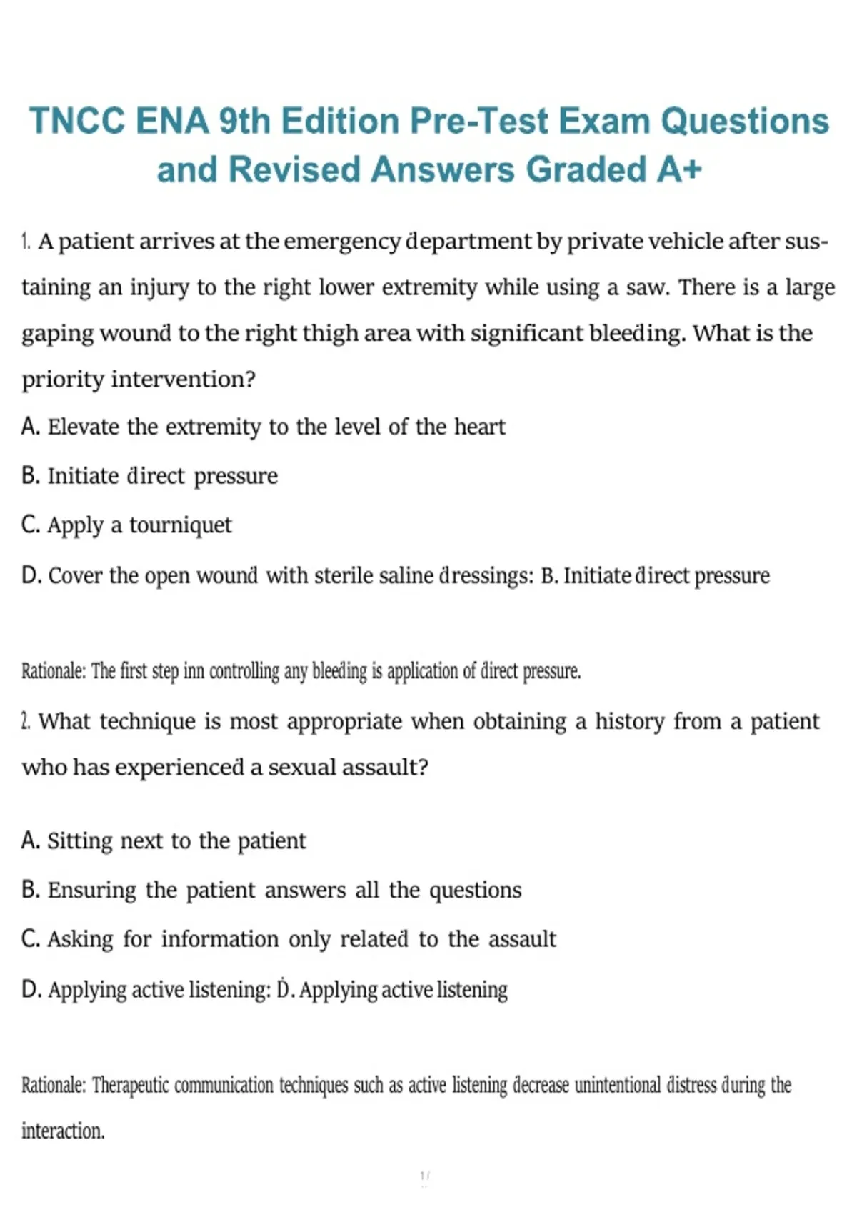 TNCC 9th Edition Actual Exam (Newest Version) – 2026/2027 | Complete Test Questions with Verified Answers (A+ Guaranteed) TNCC 9th Edition Actual Exam – 2026/2027 | Study Questions with 100% Correct Answers TNCC 9th Edition Final Test – 2026/2027 | 80 Exam Questions with Verified Answers (Graded A+) TNCC 9th Edition Final Written Exam (Updated Vers