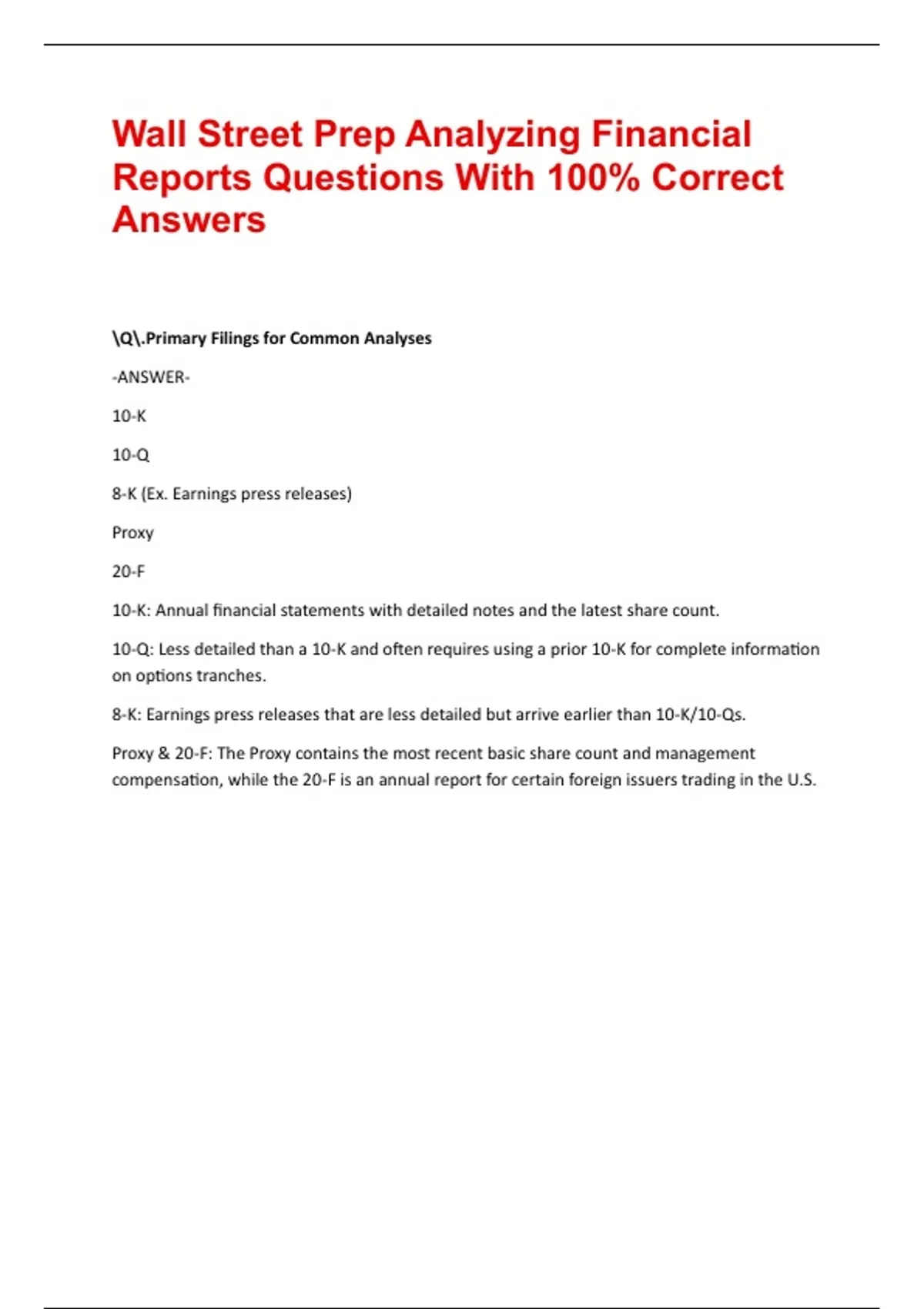 WSP ACCOUNTING WALL STREET PREP PREMIUM EXAM QUESTIONS AND CORRECT ANSWERS 2 Exam (elaborations) Wall Street Prep Analyzing Financial Reports Questions With 100% Correct Answers 3 Exam (elaborations) Wallstreet Prep Valuation Wall Street Prep Premium Exam Questions Complete With Correct Answers 4 Exam (elaborations) Wall Street Prep Excel Exam C