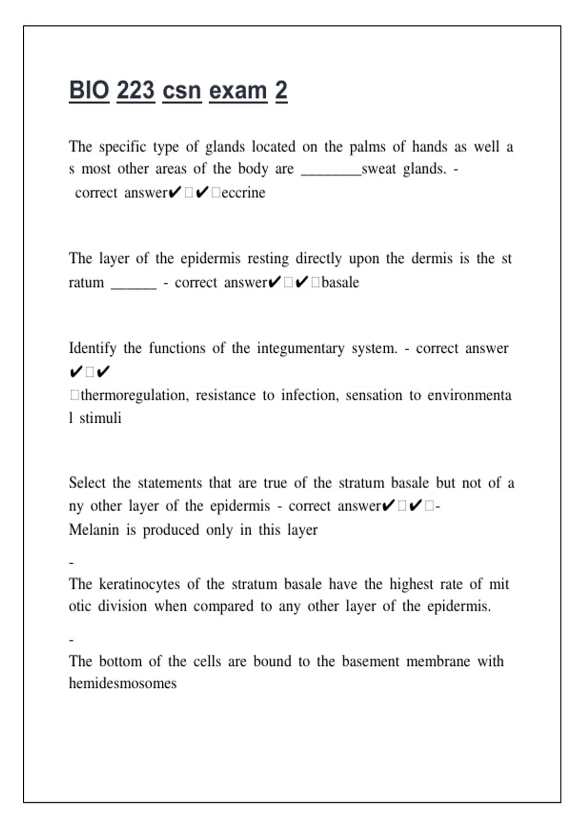 BIOL 223 Exam 1 Review (CSN-Erin Windsor)Questions And Answers Rated A+ New Update Assured