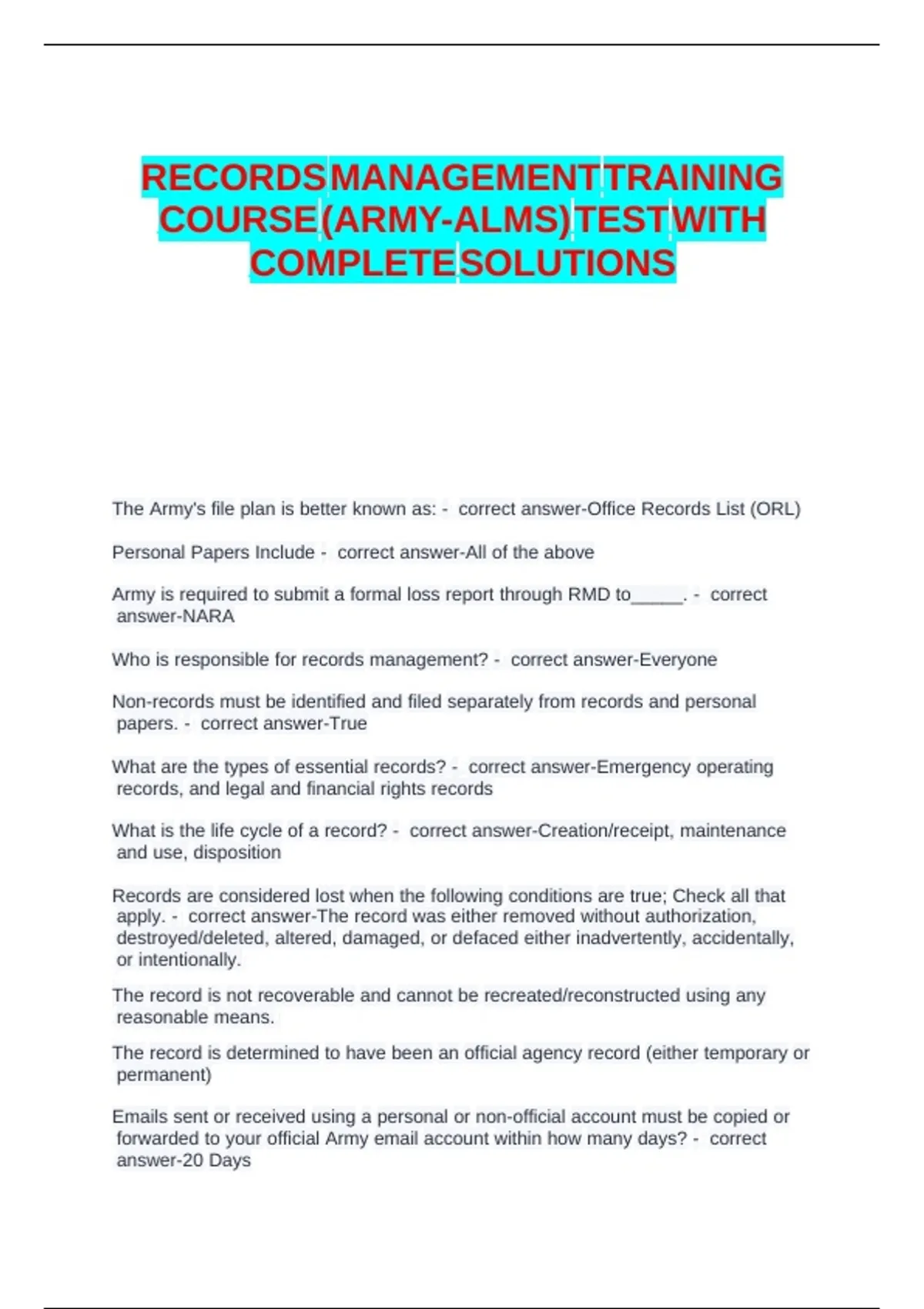 Pass the Records Management Annual Training Quiz confidently with a full pack of solutions, updated answers, and easy-to-follow explanations.