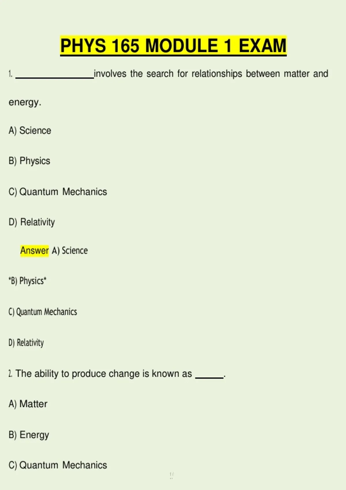 Physics 165 (PHYS 165) Module 10 Exam – Comprehensive Exam Review UPDATED WITH QUESTIONS AND CORRECT ANSWERS.