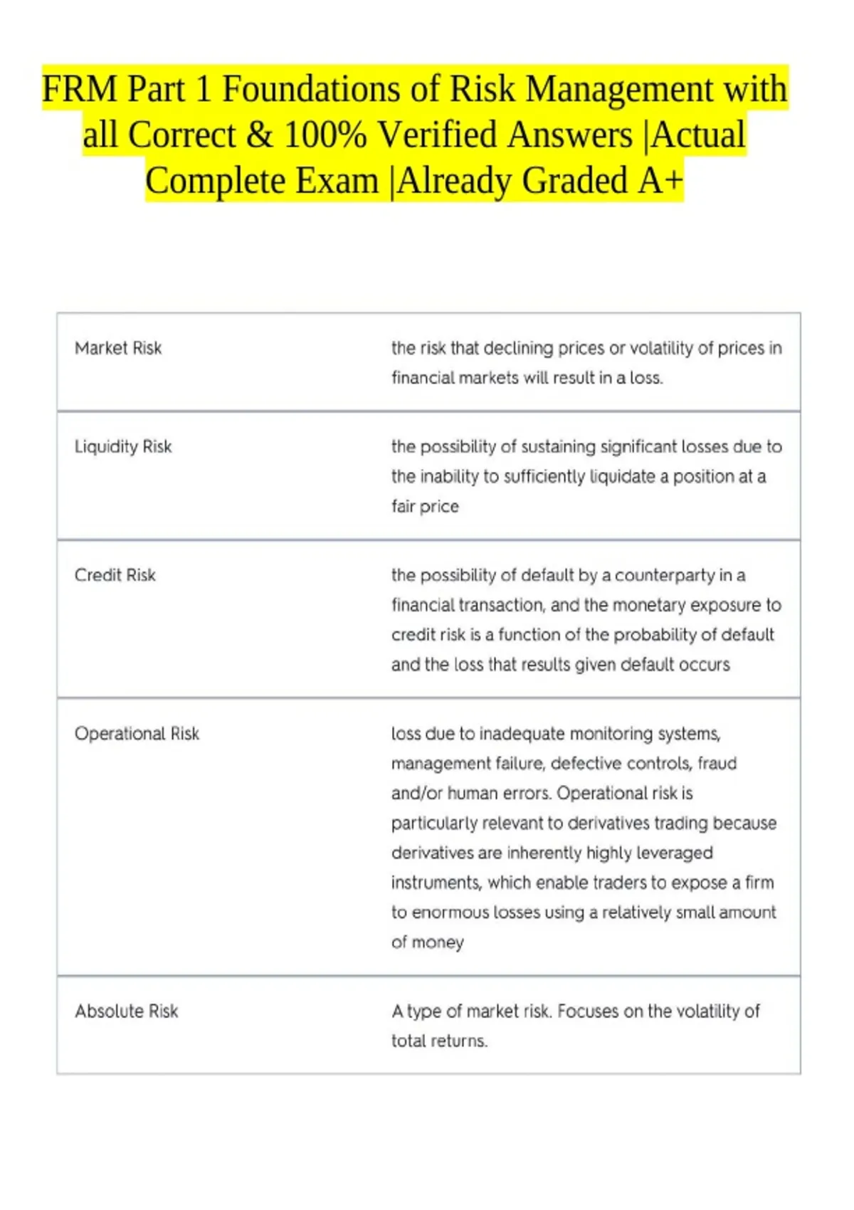 FINANCIAL RISK MANAGER EXAM PACKAGE DEAL