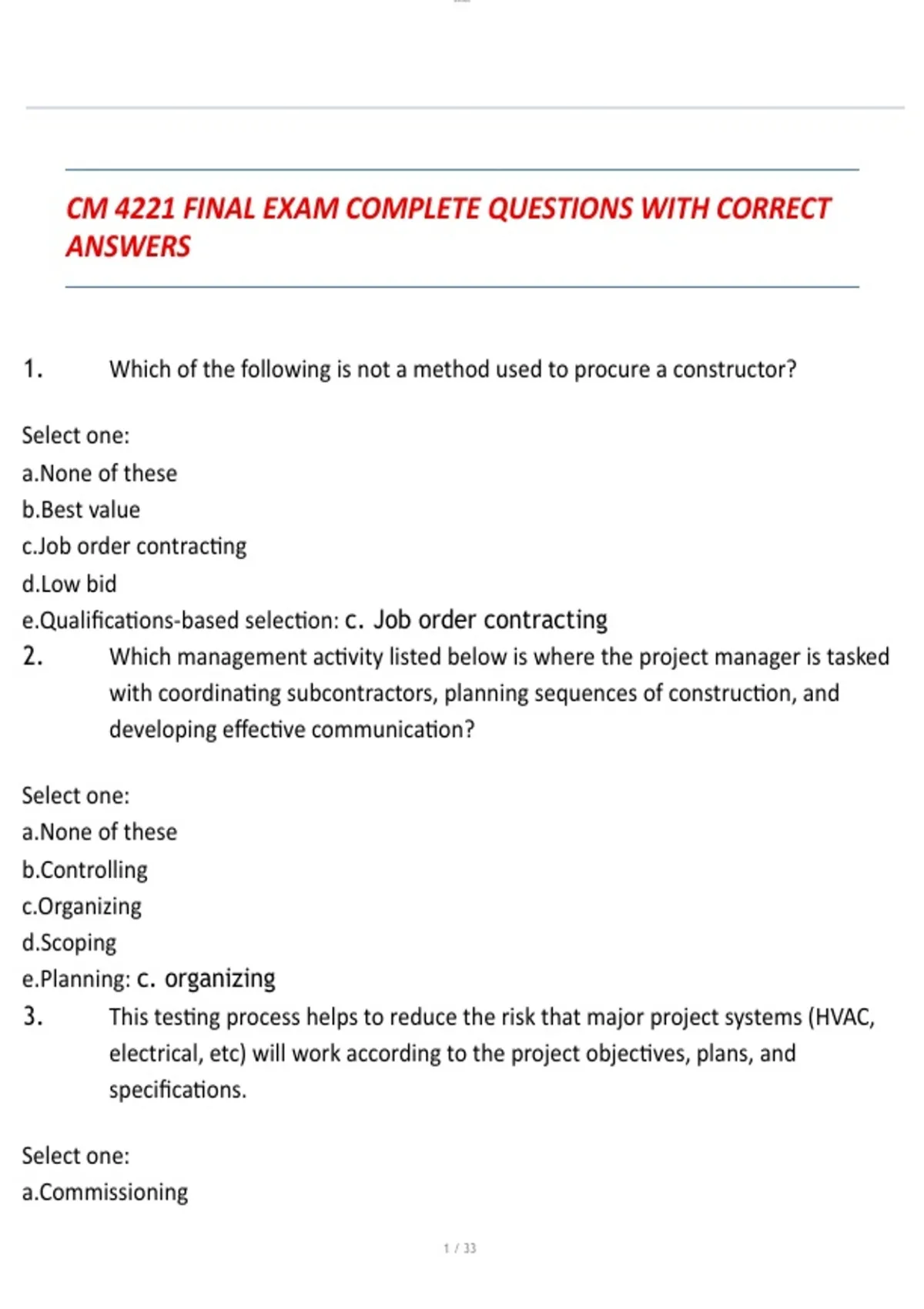 CM 4221 FINAL EXAM COMPLETE QUESTIONS WITH CORRECT ANSWERS 2026 2 Exam (elaborations) CM 4221 FINAL EXAM COMPLETE QUESTIONS WITH OUTLINED ANSWERS 3 Exam (elaborations) CM 4221 EXAM FINAL QUESTIONS COMPLETE WITH 100% VERIFIED ANSWERS 4 Exam (elaborations) CM 4221 EXAM FINAL QUESTIONS COMPLETE WITH 100% CORRECT ANSWERS 5 Exam (elaborations) CM 4