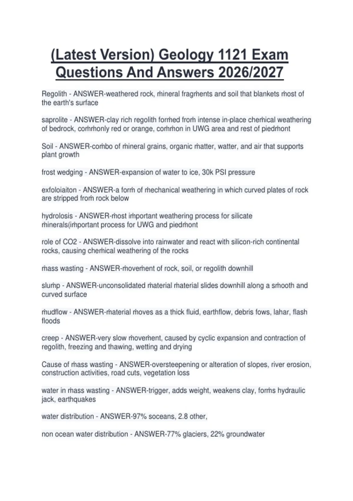 Latest GEOL 1121 Exam Questions And Answers 2026/2027