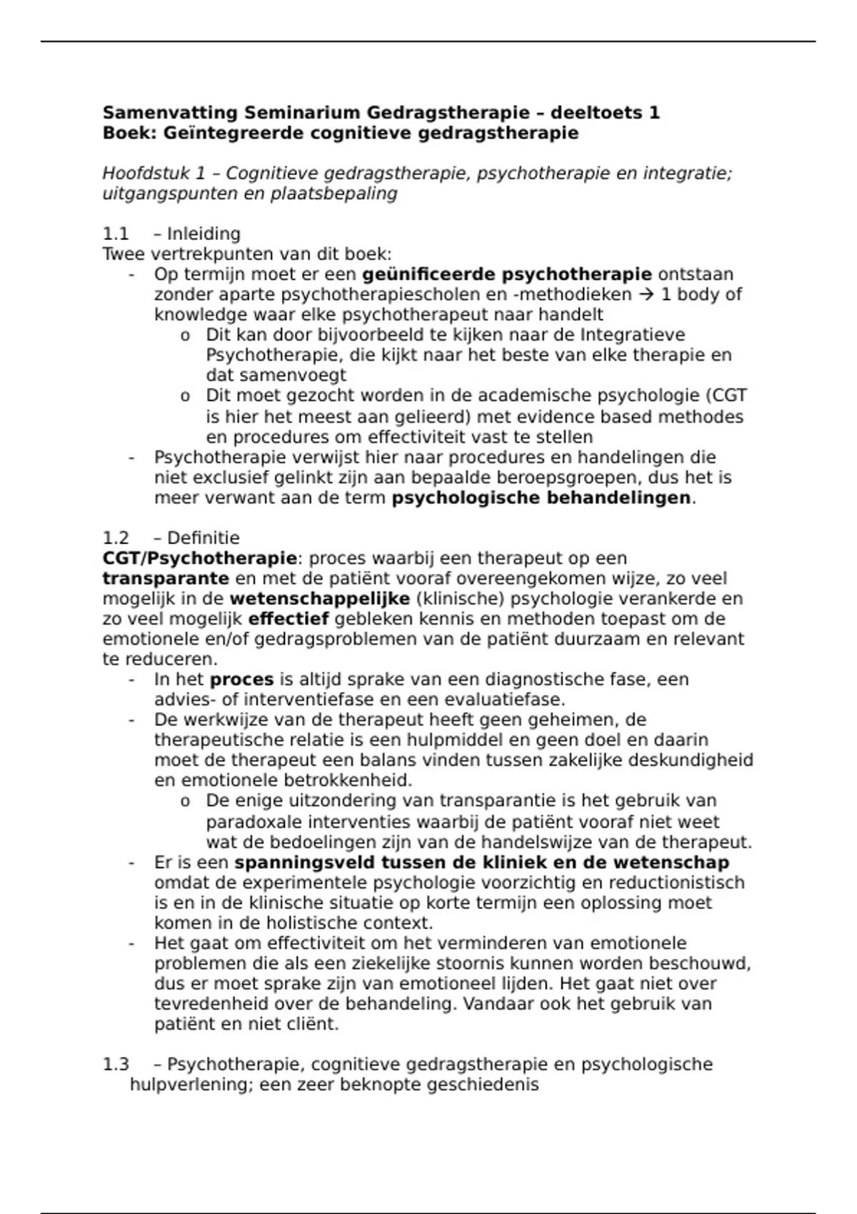 Samenvatting Seminarium Gedragstherapie deeltoets 1
