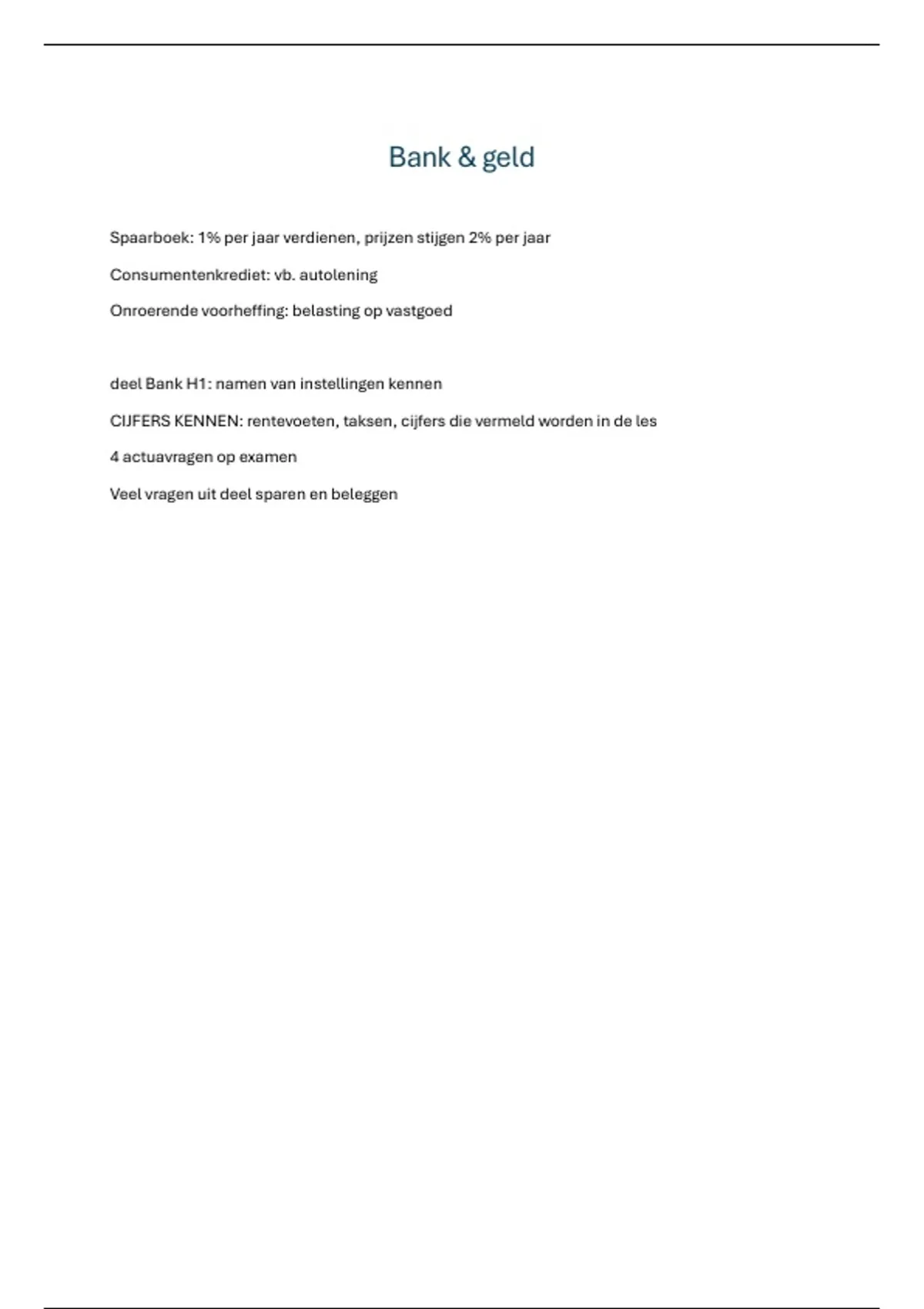Samenvatting bank en geld