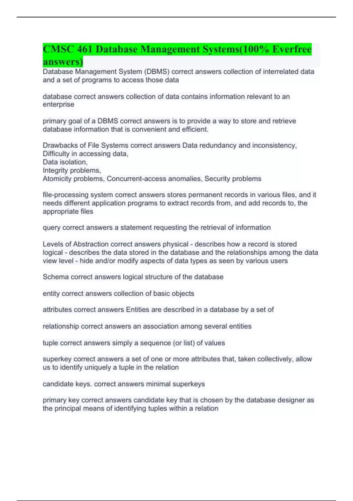 CMSC 461 Database Management Systems(100% Everfree answers) DATA 630: Applied Database Management (100% Guaranteed) Database Management Exam 1(Completely solved) Concepts of Database Management, 10th ed. Module 1 Questions (100% Error-free answers) Module 4 Database management tools (100% Guaranteed)