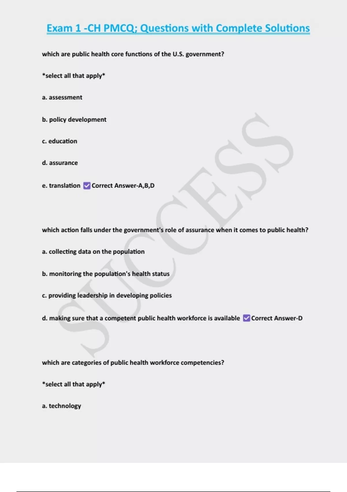 COMPLETE PACKAGE-::PMCQ EXAMS WITH CORRECT ANSWERS