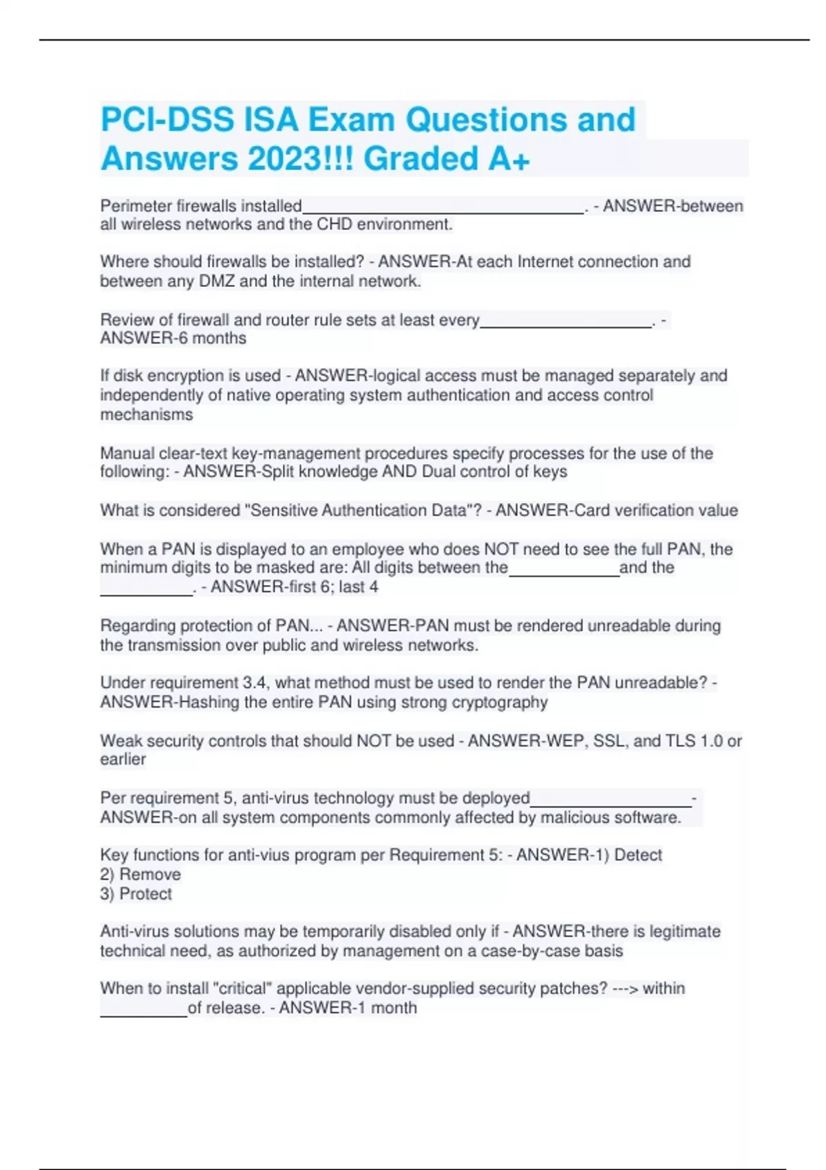PCI-DSS ISA Exam Questions and Answers 2023!!! Graded A+