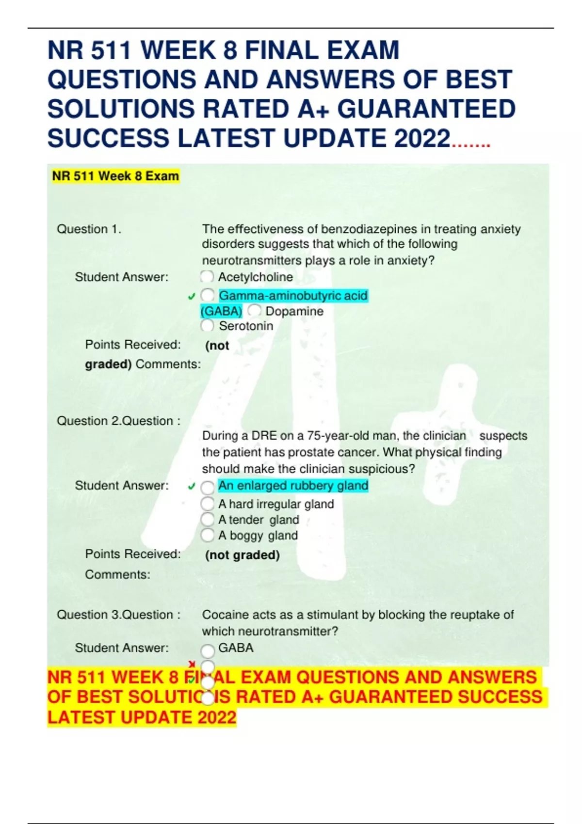 1 NR 546 Week 8 Dementia Medication Tabl e / Dementia medication table LATEST UP DATE 2024 GRADED A+ 2 Exam (elaborations) NR 602WEEK 8 FINAL EXAM ACTUAL QUESTIONS BANK (129 Q&A) / NR602 EXAM QUESTIONS BANK (129 Q&A):NEWEST-2023 |CHAMBERLAIN 3 Exam (elaborations) Regis NU665 Week 8 Midterm Quiz Latest 2023 (Please see the page